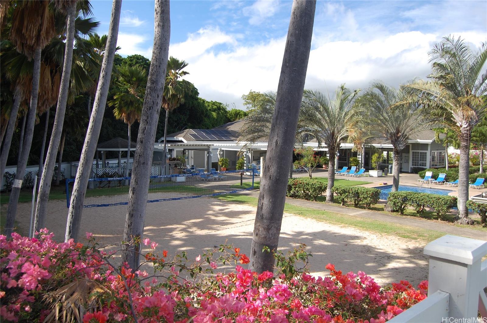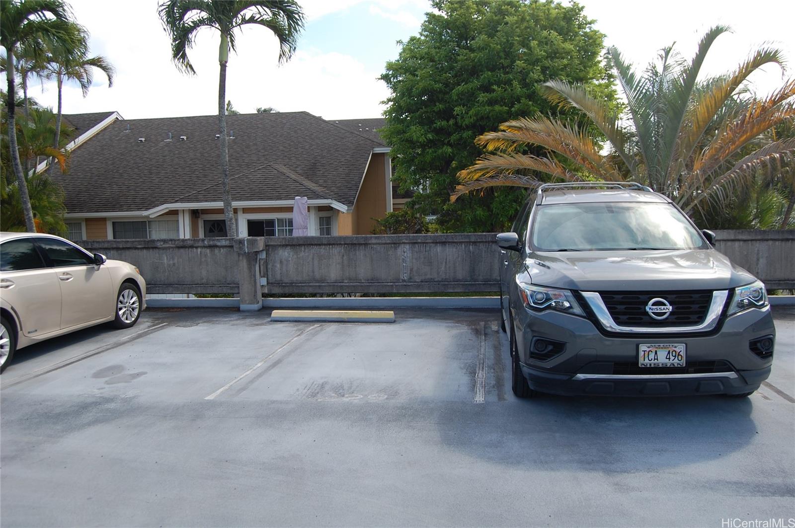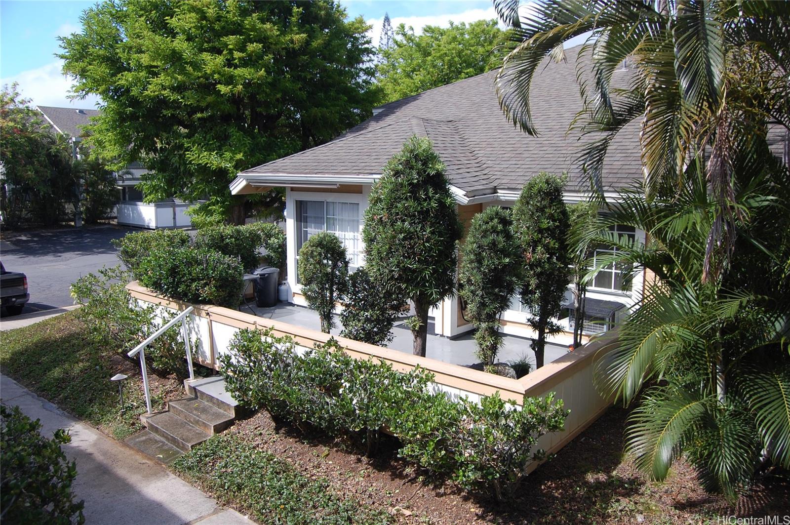 Highly DESIRABLE & RARELY available corner end unit, single level ground floor with NO UPSTAIRS NEIGHBOR. Featuring VAULTED CEILING & spacious 300 ft courtyard. Private facing open area. Close to guest parking & 1 covered & 1 open stall. Upgrades 2025 painted interior. 2022 Primary bath glass door and shower enclosure with ceramic tile & base. 2020 Living room, bedroom, hall upgraded with koa laminate flooring. 2019 New Decora type outlets. 2019 Attic upgraded with fire resistant steel door & 3/4 inch plywood architect grade flooring & shelves. 2012 New kitchen cabinets, new 1 foot x 1 foot Travertine Tile in kitchen with crown molding. Crosspointe is a gated community with on site 24/7 security and close to town, shopping and Pearl Harbor. Heated salt water pool, weight room, sand volleyball court, meeting and private party areas and 2 electric car charging stations. Listing by: Realty Edge Inc (808) 227-0866
