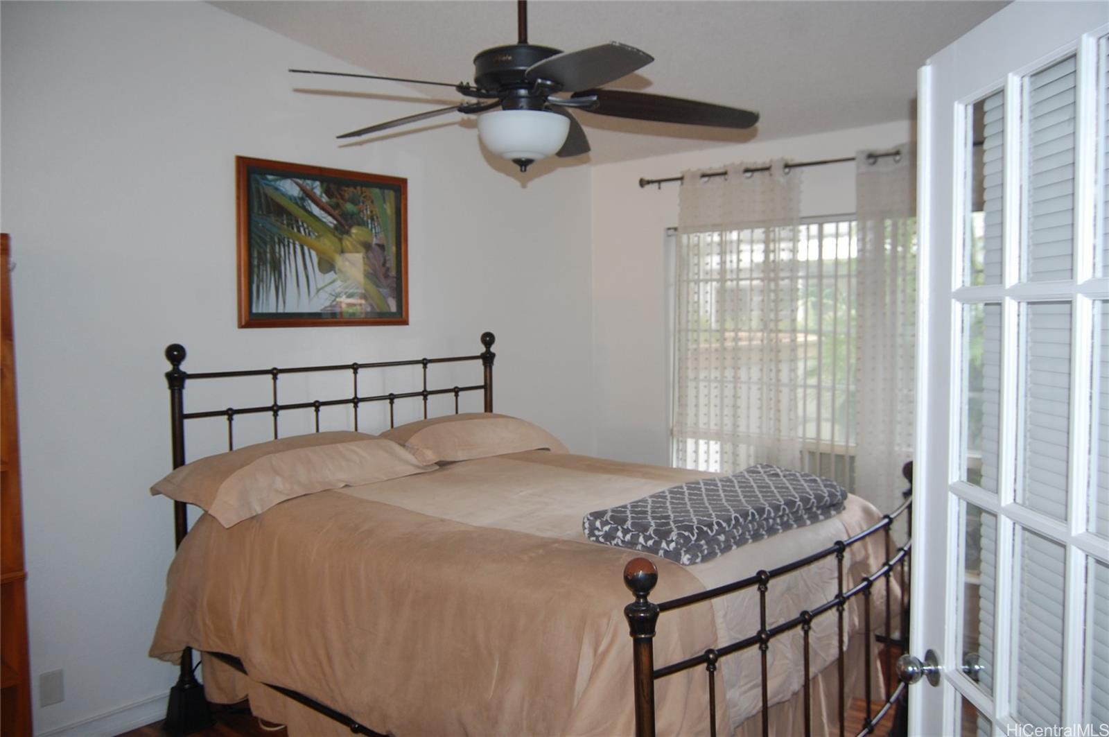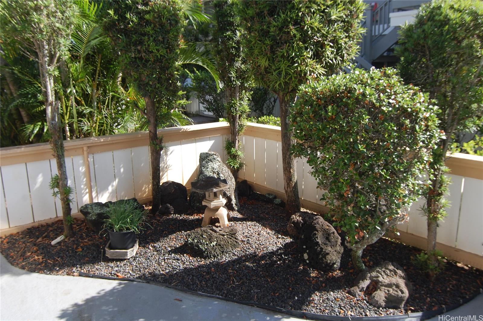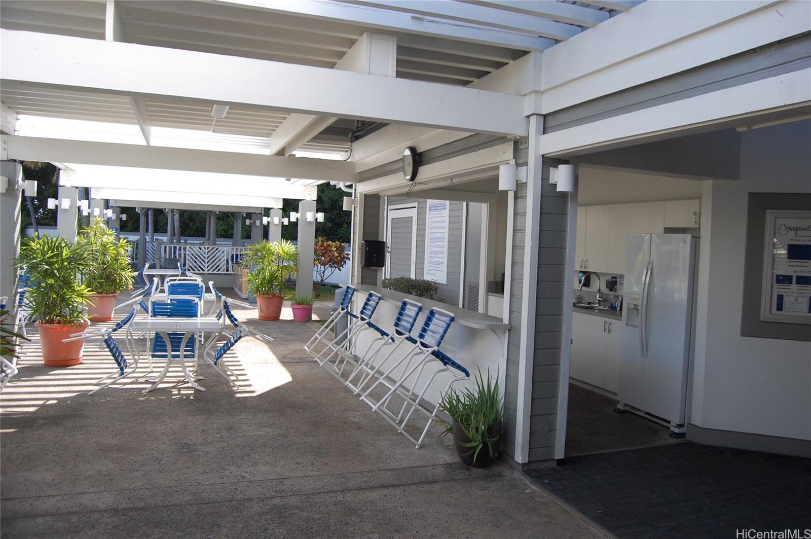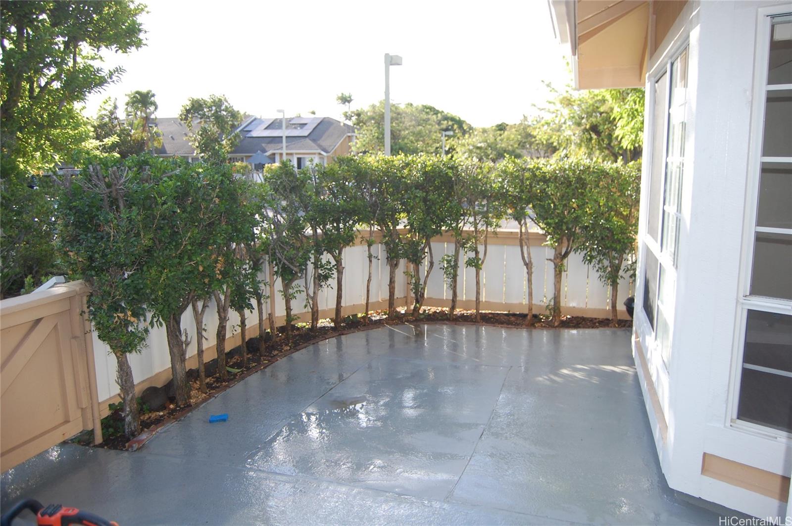 Highly DESIRABLE & RARELY available corner end unit, single level ground floor with NO UPSTAIRS NEIGHBOR. Featuring VAULTED CEILING & spacious 300 ft courtyard. Private facing open area. Close to guest parking & 1 covered & 1 open stall. Upgrades 2025 painted interior. 2022 Primary bath glass door and shower enclosure with ceramic tile & base. 2020 Living room, bedroom, hall upgraded with koa laminate flooring. 2019 New Decora type outlets. 2019 Attic upgraded with fire resistant steel door & 3/4 inch plywood architect grade flooring & shelves. 2012 New kitchen cabinets, new 1 foot x 1 foot Travertine Tile in kitchen with crown molding. Crosspointe is a gated community with on site 24/7 security and close to town, shopping and Pearl Harbor. Heated salt water pool, weight room, sand volleyball court, meeting and private party areas and 2 electric car charging stations. Listing by: Realty Edge Inc (808) 227-0866