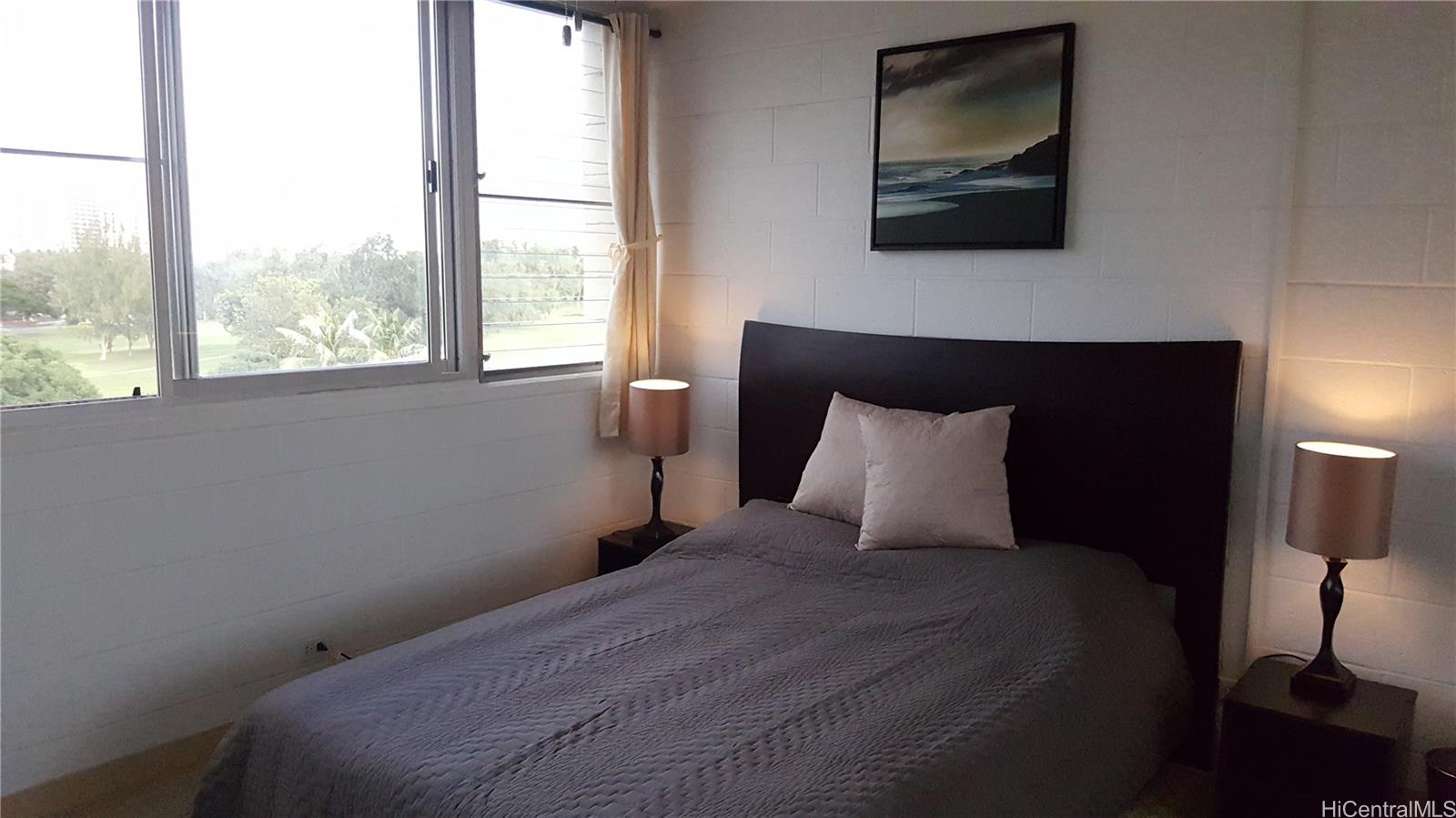A Secure, well-managed building: this large stunning golf course view 1bd has just about the lowest price 1 bd in all of Honolulu (state’s assessed value:$326,800). A nice design with windows on both sides to allow cool trade winds to flow in.