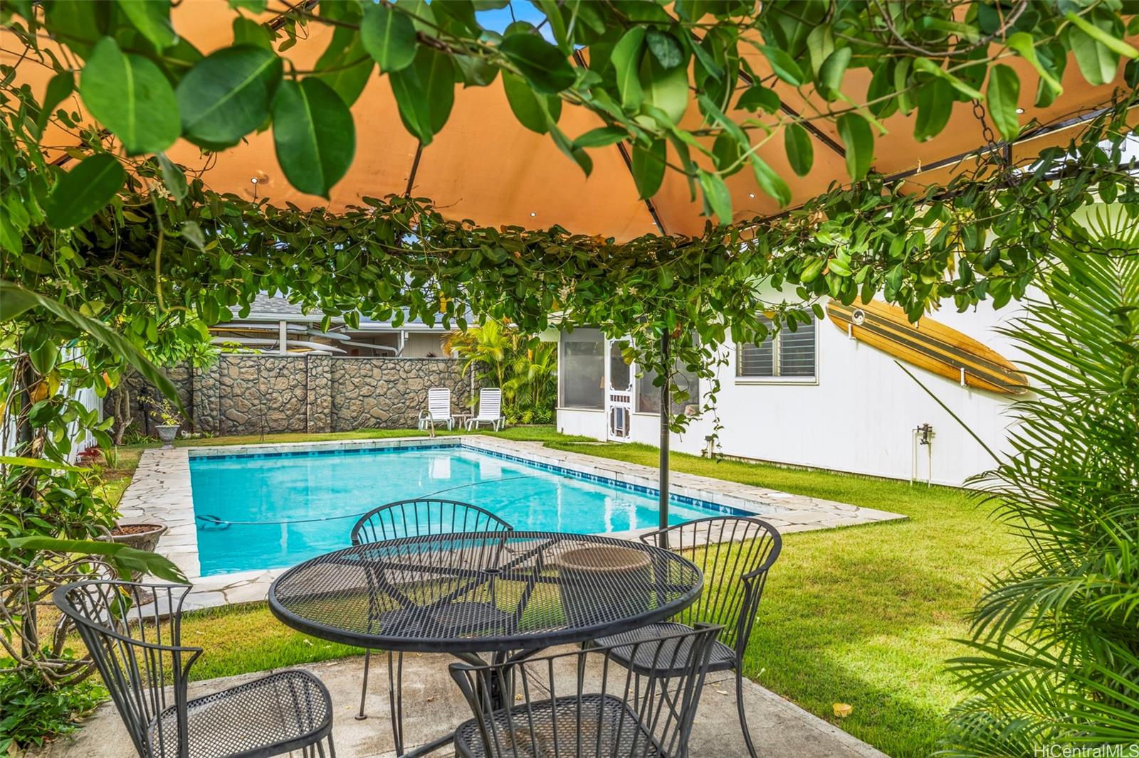 string(1057) "Lovingly cared for and lived in by one family for decades, this Enchanted Lakes home immediately welcomes you with a true sense of warmth the moment you step through the front door. The open layout and vaulted ceilings of the main living area greet you with a breath of fresh air as sunlight filters through window-lined walls. Embodying the true essence of Kama'aina living, this single-level home offers cool cross-breeze tradewinds and easy indoor-outdoor living with a large enclosed lanai—perfectly suited to become your outdoor entertainment space, pool room, or yoga studio... whatever your heart desires! The gem of this home...a spacious landscaped backyard with in-ground pool, cabana area, grass for pets, and high fencing for privacy. Additional bonuses include a Revolusun-installed 25-panel owned PV system on Net Metering, indoor laundry room, and extra-large enclosed 2-car garage w/storage. Just minutes from the iconic Lanikai Beach, Kailua Beach Park, and some of the best dining, shopping, and outdoor activities Kailua has to offer!"