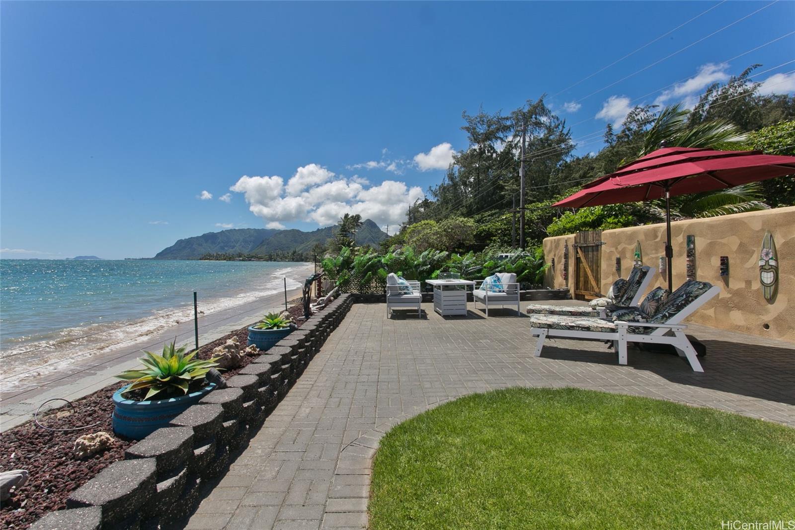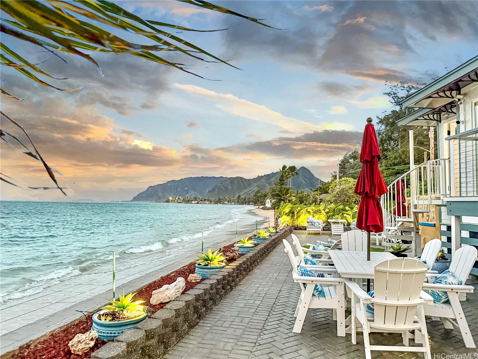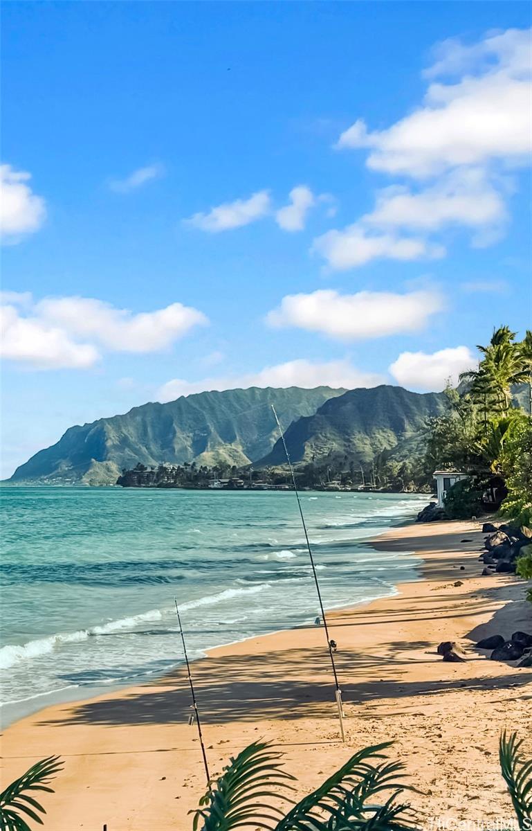 Step outside to 180° views stretching from mauka to makai. Bordering a white sandy beach, enjoy unobstructed vistas of turquoise waters, sandy coastline, and the majestic Ko?olau Mountains.