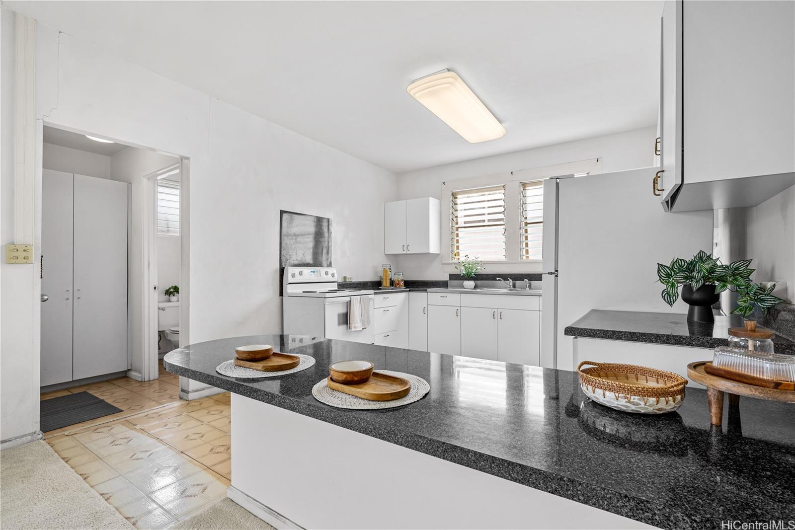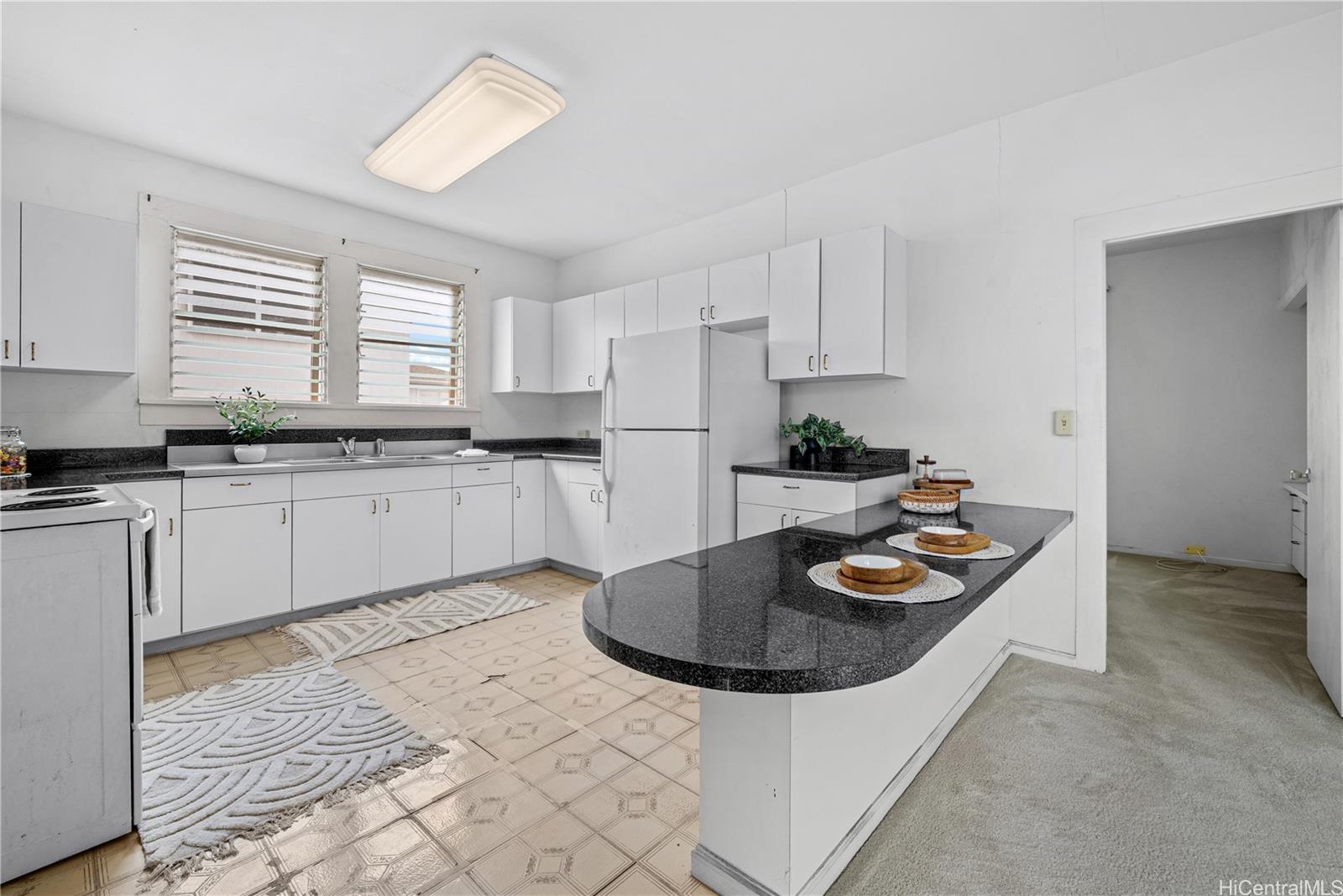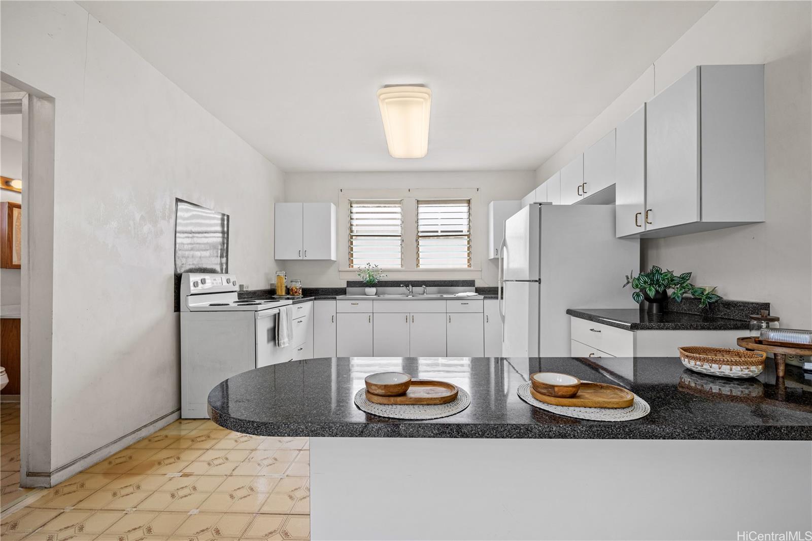 Don't miss this charming 2-bedroom, 2-bath single-family home in the heart of Kaimuki, just behind Diamond Head Theatre. You'll love the high ceilings and open floor plan that includes an extra large kitchen with eat-on peninsula that opens seamlessly to the living area. There are lots of windows in every room, offering cool cross breezes and lots of natural light. This home has been loved by generations of the same family and is now ready for your personal touch. Enjoy the privacy of being at the end of a little lane with a covered parking space under a shared carport, and a gated yard with room to play and grow. Located close to shops, dining, and neighborhood favorites. Property is being sold in its As-Is condition. Listing by: Corcoran Pacific Properties (808) 294-4517