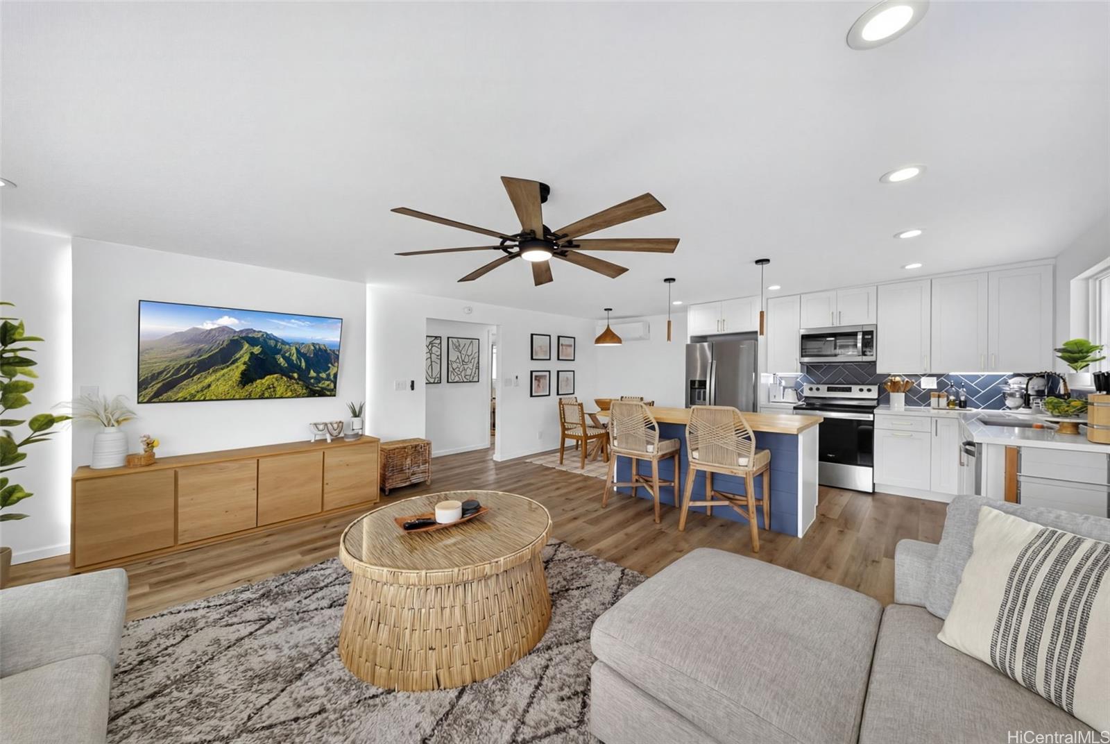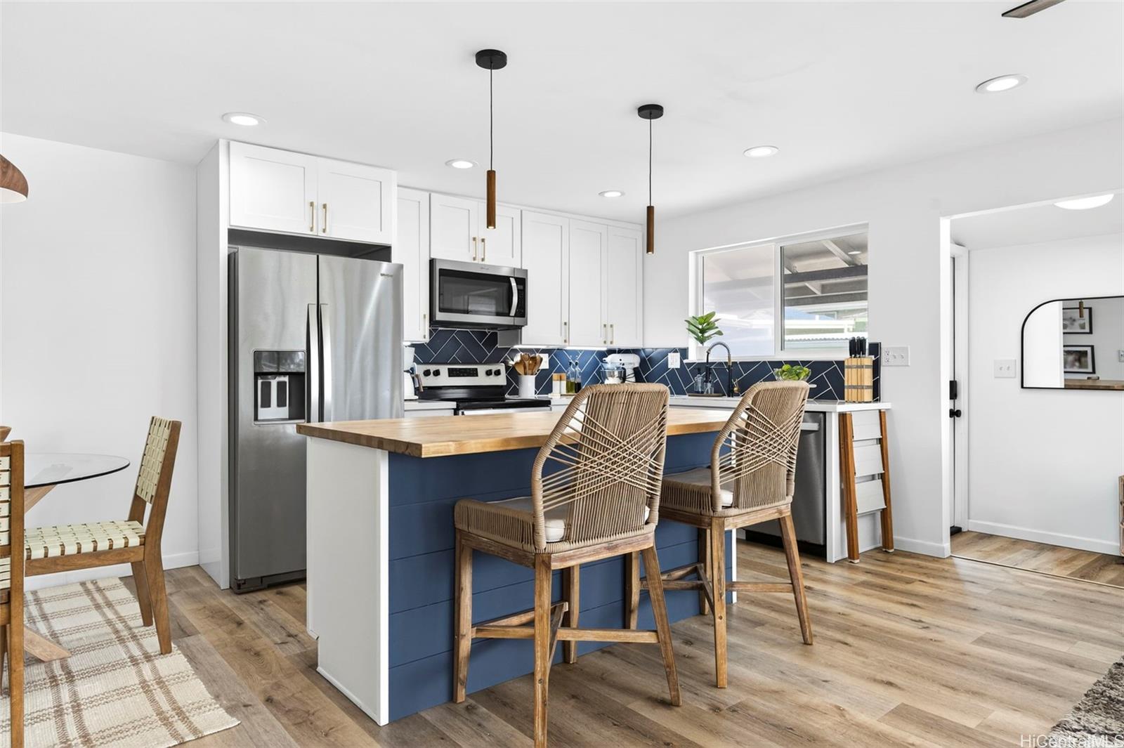 [0] => BEAUTIFULLY RENOVATED in 2022 and tucked into one of Kailua’s most beloved neighborhoods, this single-story home offers the relaxed island lifestyle so many dream about. Just under a mile from world-famous Kailua Beach, mornings begin with soft sunrise colors & a peek at Mount Olomana right from your living room, while days flow effortlessly between indoor comfort and outdoor living. The thoughtfully updated interior features modern finishes, quartz countertops with warm veining, butcherblock island, waterproof luxury vinyl flooring, updated cabinetry, & split AC for year-round comfort. Outside, the newly landscaped backyard offers a fresh lawn and a cool covered patio perfect for weekend barbecues, or unwinding after a day at the beach. Located on a quiet, low-traffic street with plenty of guest parking, this home also offers freedom from HOA fees & convenience to nearby parks, shopping, dining, Target, Whole Foods, plus easy access to H-3 & the Pali. With a dedicated indoor laundry room, carport storage, & 2022 termite tenting, this home blends peace of mind with the charm & ease of Windward living — experience the Kailua lifestyle! (One or more photos have been enhanced)