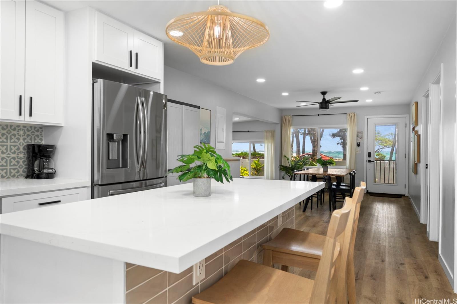 This beautifully renovated oceanfront duplex presents a rare and exceptional opportunity, featuring two spacious 3-bedroom, 2-bathroom units—each with its own private yard, separate entrance, and stylish modern upgrades throughout. Located just steps from the shoreline, enjoy unobstructed ocean views and the serene sound of waves right from your doorstep. Whether you’re looking to embrace the savvy benefits of house hacking by living in one unit and renting out the other, or seeking the perfect setup for multi-generational living, this home offers flexibility, comfort, and privacy. Thoughtfully designed for island living, it boasts ample parking for multiple vehicles, inviting outdoor spaces, and a layout that captures natural light and sea breezes. This is more than just a home—it’s a lifestyle investment in one of Oahu’s most scenic coastal communities. Listing by: Real Broker, LLC (855) 450-0442