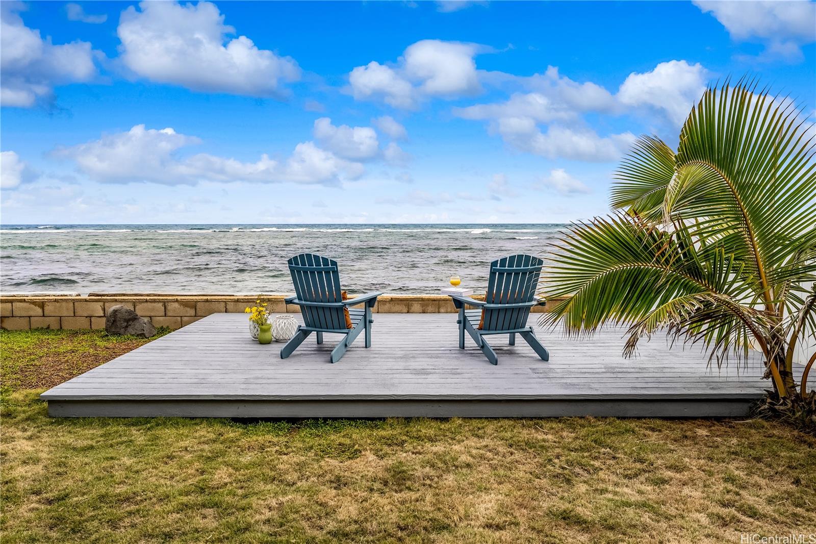 string(999) "Enjoy island country living at its finest in this beautifully renovated oceanfront home located in the serene coastal community of Hau‘ula. This 2-bedroom, 2- bathroom home, with a separate office, offers a relaxed island style feel. Step inside to find a bright and breezy open floor plan - ideal for entertaining or quiet seaside living. Large windows and sliding doors fill the home with natural light and cooling trade winds, framing unobstructed ocean views and breathtaking sunrises over the Pacific. The new renovations showcase fresh interiors with thoughtful details throughout, including a brand new kitchen, new luxury vinyl plank flooring, and a completely updated electrical system. The living and dining areas flow seamlessly onto a private oceanfront yard and deck - perfect for morning coffee or evening relaxation as the waves roll in. Experience the charm of this Hau'ula gem as it offers