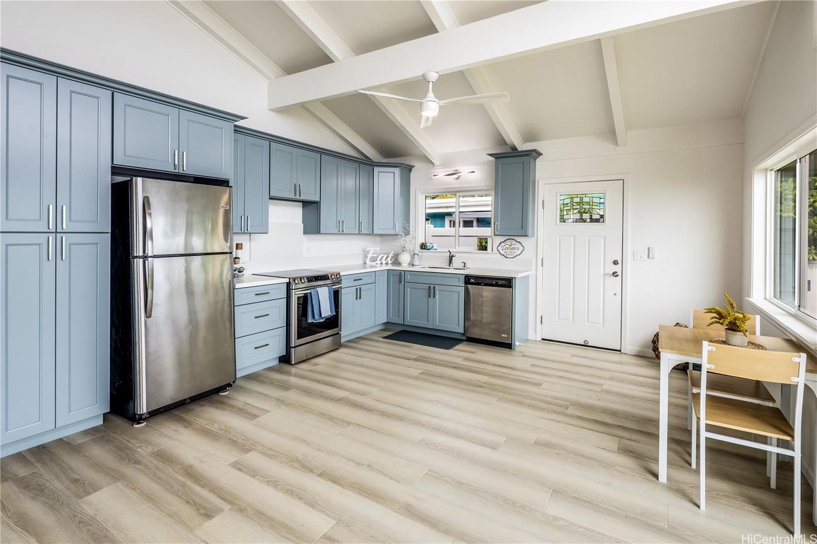 Enjoy island country living at its finest in this beautifully renovated oceanfront home located in the serene coastal community of Hau‘ula. This 2-bedroom, 2- bathroom home, with a separate office, offers a relaxed island style feel. Step inside to find a bright and breezy open floor plan - ideal for entertaining or quiet seaside living. Large windows and sliding doors fill the home with natural light and cooling trade winds, framing unobstructed ocean views and breathtaking sunrises over the Pacific. The new renovations showcase fresh interiors with thoughtful details throughout, including a brand new kitchen, new luxury vinyl plank flooring, and a completely updated electrical system. The living and dining areas flow seamlessly onto a private oceanfront yard and deck - perfect for morning coffee or evening relaxation as the waves roll in. Experience the charm of this Hau'ula gem as it offers