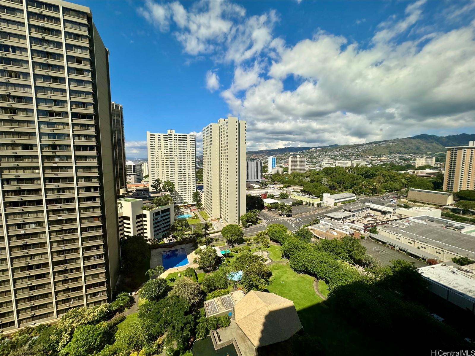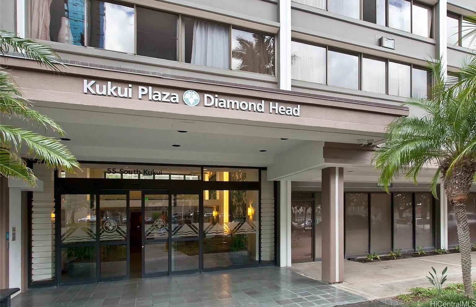 Welcome to the Diamond Head Tower at Kukui Plaza. This 1-bedroom, 1-bathroom high-floor unit offers beautiful views in a secure and well-managed building. Residents enjoy resort-style amenities including a heated pool, recreation deck, meeting rooms, and a landscaped walking path. Feel at peace in the serene environment with 24-hour security, resident manager, and building staff.