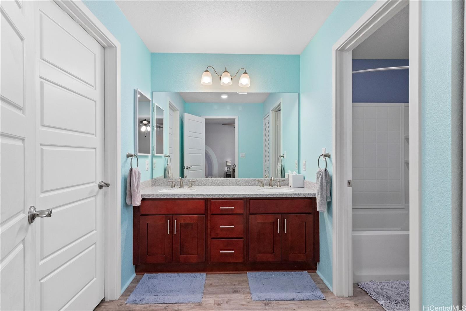 Highly desirable 2 bed, 2.5 bath townhome in Pohakala at Mehana! Built in 2017, this 1,324 sq. ft. home features 2 primary suites with walk-in closets and dual vanities in both bathrooms, vinyl plank and carpet flooring, and a 57 sq. ft. lanai. Original owners have kept the home in excellent condition. Enjoy a 1-car garage with tandem driveway parking, a small fenced yard, and a pet-friendly association. Community amenities include a pool, BBQ area, rec room, basketball courts, playgrounds, and a dog park. Conveniently located in the heart of Kapolei near shopping, dining, and entertainment. Home is VA assumable at 2.75% with a balance of $433,981.00. Current monthly payment of $2243.00 P&I. Association is pet friendly. Listing by: Coldwell Banker Realty (808) 676-7200