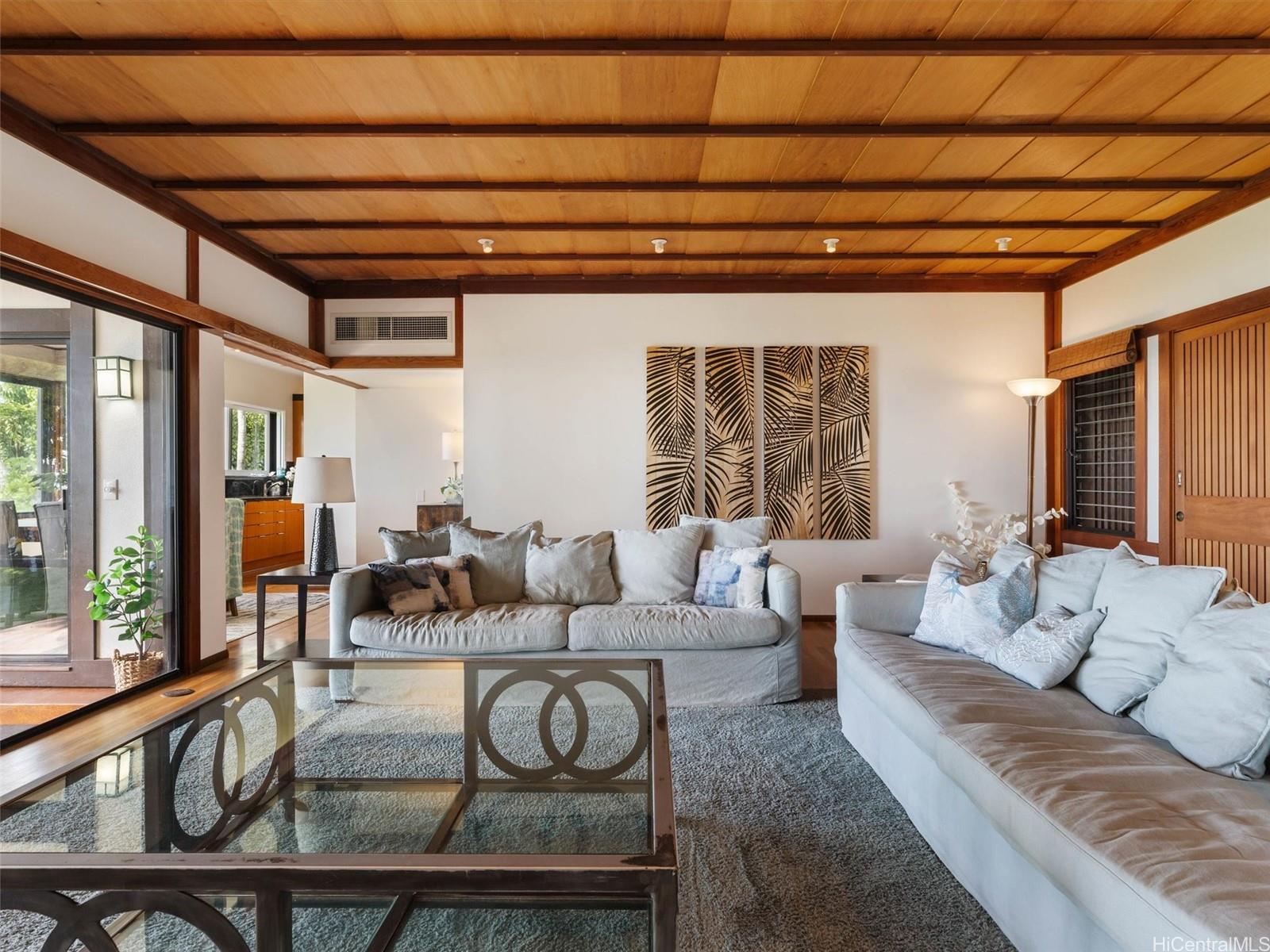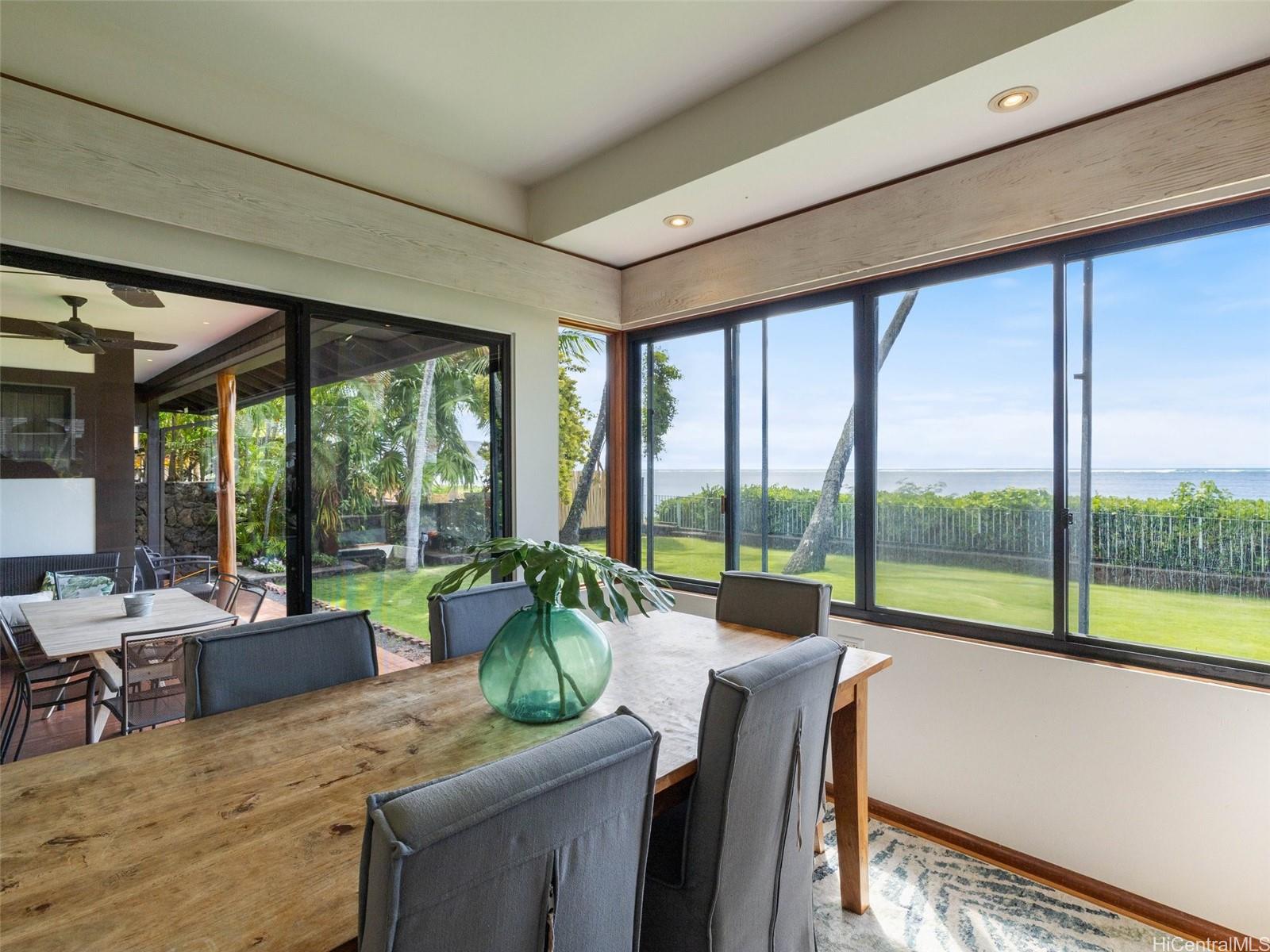 RARE, VINTAGE, MINT, BEACHFRONT OSSIPOFF GEM! Experience timeless Hawaii luxury in this exquisite 3-bedroom, 2.5-bathroom single-level home, meticulously crafted by renowned architect Vladimir Ossipoff. Nestled on a pristine, sandy, slight beachfront bluff, this architectural gem harmoniously blends indoor and outdoor living, with breathtaking ocean views+uninterrupted tranquility. Step inside this spacious, airy open floor plan, highlighted by classic mid-century design elements and artistry. The gourmet kitchen, equipped with top-line appliances, flows into the dining+living areas, perfect for entertaining guests or enjoying family evenings. Relax+unwind in the new hot tub, watching the stars above+the cool tradewinds, or stay cool inside, with central air conditioning. The enclosed garage and subtle lighting offer convenience+security. Embrace a lifestyle of elegance and a quiet, timeless luxury this special home beholds, while just minutes to world-class dining, shopping, schools, hospitals, and the best of Honolulu, or Waimanalo, Kailua, Northshore, & West Oahu! Every detail of this dream home embodies thoughtful ambiance, privacy, and the expansive beauty of Ossipoff. Listing by: Deep Blue HI (808) 371-3561