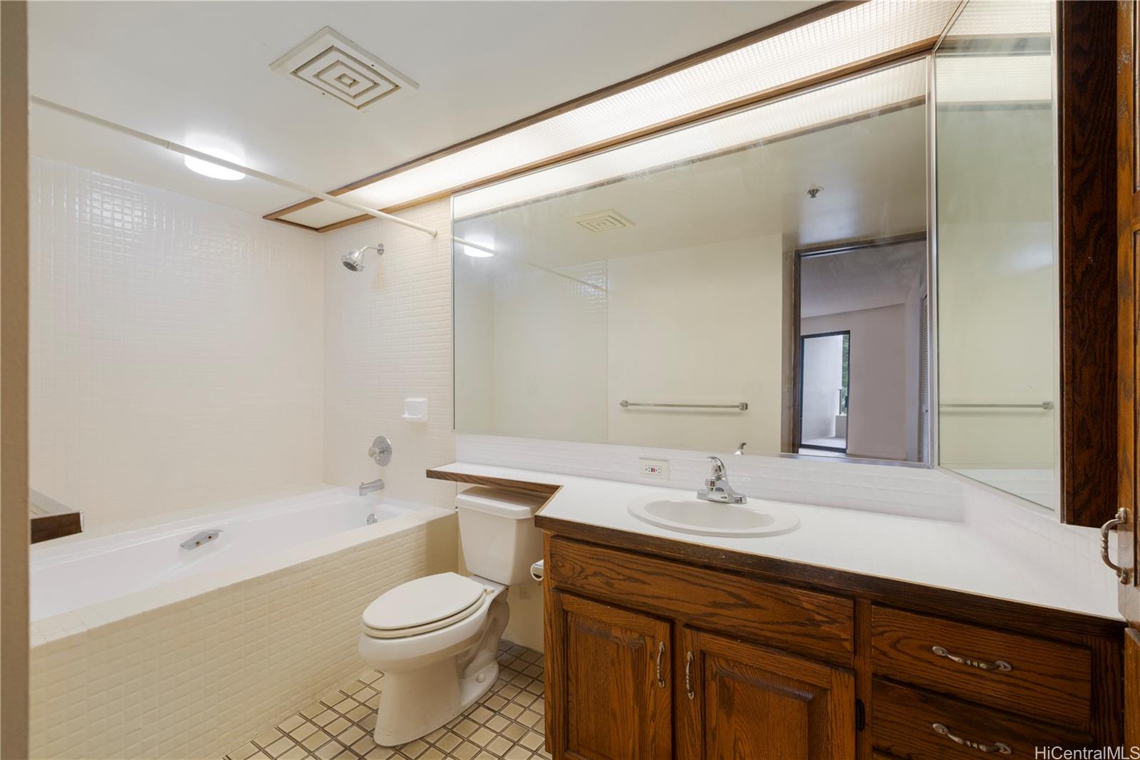 THIS IS THE ONE! Beautiful 1,019 sf 1 bedroom, 2 full baths, 2 parking unit in beautiful Hawaii Kai welcomes you with gorgeous views. This well maintained unit features vinyl and tile flooring for easy maintenance. Large bedroom has ample room for an office setup along the king size bed. Primary bathroom features a vintage soaking tub, and more storage. Central cooling system has been fully & preventively upgraded for year round comfort. Plumbing at washer has been preventively upgraded and includes a new access panel and shut off valve. Building amenities include heated pool, whirlpool, billiard room, tennis/pickle ball courts, sauna, separate workout rooms for men and women, meeting rooms, recreation area with full kitchen. Ample covered guest parking stalls. Fire sprinklers are included in this unit. Storage area is located in the basement of the building. The Commodore is 100%, insured. 2 FULL SIZED parking spaces are conveniently located on the same floor as your unit. Shopping and dining are reachable with a short drive and include: Safeway, Costco, City Mill, Longs, coffee shops, and a variety of shopping and dining choices. Listing by: Berkshire Hathaway HmSvc HI RE (808) 864-4450