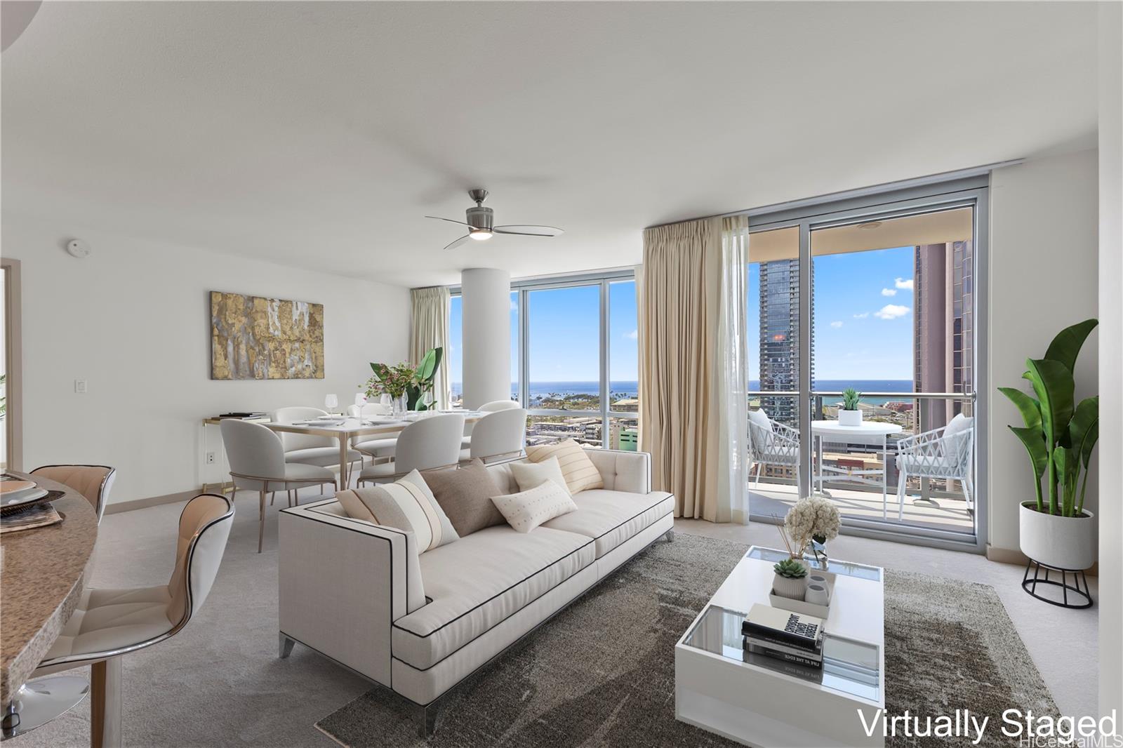 Welcome home to Keauhou Place, in the heart of urban Honolulu in the highly desired Kakaako neighborhood! Enjoy breathtaking ocean and city views from your open living area and private lanai — the perfect backdrop for relaxing or entertaining. This spacious 3-bedroom, 2-bath residence offers a fresh new look with brand-new carpet and freshly painted interior, ready for you to move right in. Keauhou Place offers wonderful amenities, including a pool, fitness center, BBQ areas, and more, with shops, dining, and SALT at Kakaako just a few minutes away. Modern island living meets unbeatable convenience!