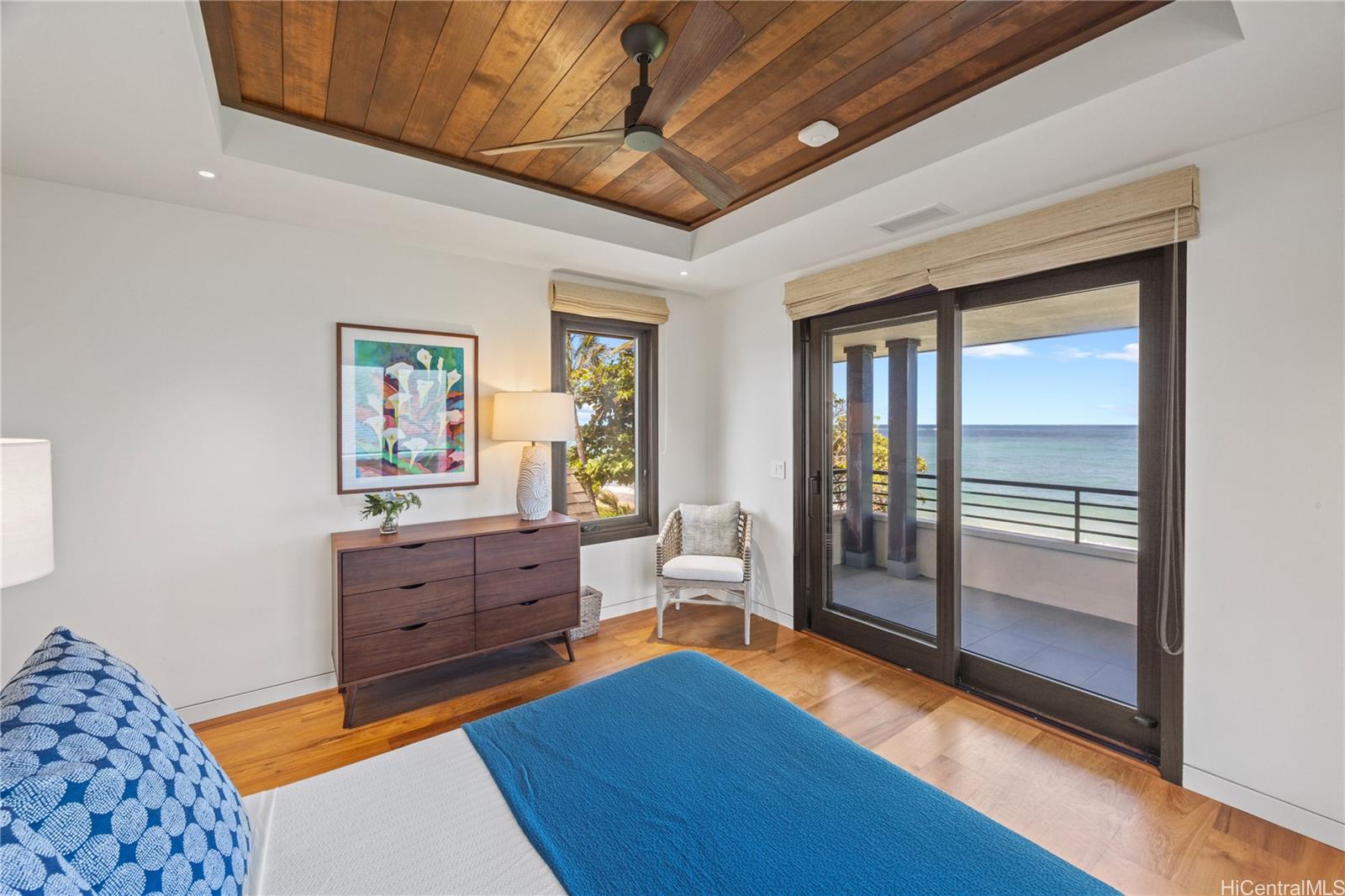 Masterfully designed beachfront residence in Malaekahana by architect Peter Vincent and Mokulua Builders. This exceptional home blends cutting-edge green design with dramatic ocean views and seamless indoor-outdoor living. A thoughtfully planned oceanfront lot features multiple pavilion-style structures that maximize views, natural light, and ventilation. The grand outdoor pavilion offers a covered lanai with full bath, kitchenette, travertine flooring, and mahogany doors opening to a lush courtyard. A striking 45-foot lap pool sits between the pavilion and main residence, creating a seamless water axis and direct connection to the ocean. Expansive lanais and large glazed walls bring in ocean breezes and continuous coastal views. Refined finishes include natural stone floors, limestone feature walls, custom woodwork, teak stair treads, mahogany railings, and custom doors and windows. A rare opportunity to own a world-class oceanfront estate on Hawai‘i’s North Shore—pairing modern luxury with thoughtful sustainability in one of the island’s most desirable settings. Listing by: Compass (808) 286-6474