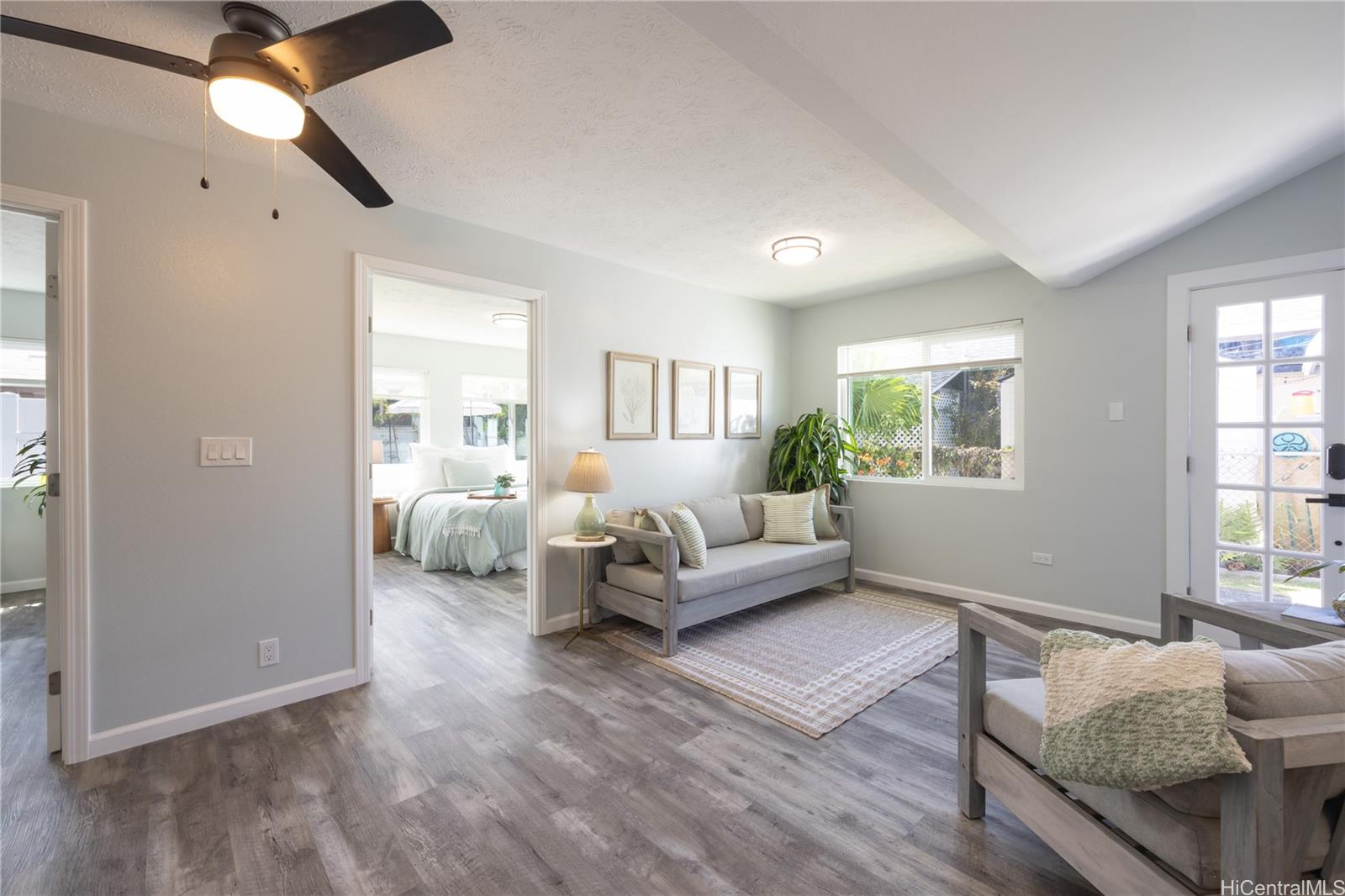 Rare 2.75% VA Assumable Opportunity in Kailua! Fall in love w/ this beautifully renovated home featuring a flexible floor plan perfect for multi-generational living or rental income. Main home offers a large open kitchen/living area, 3 bedrooms / 1 bath, LVP flooring & vinyl windows throughout. Attached is a spacious 2 bedroom/1 bath unit w/ its own kitchenette, laundry room and private backyard - ideal as a rental, guest suite, or extended Ohana space. Every detail has been updated - the home underwent a complete renovation in 2021, including splits, flooring, kitchens, and baths, and a new roof was installed in 2023. A large enclosed workshop off the 2-car carport provides room for tools, surfboards, bikes & all your lifestyle gear. The location is hard to beat - a short stroll to shops, restaurants & a quick bike or walk to world-famous Kailua Beach. Don’t miss your chance to secure this low 2.75% rate & enjoy the best of island living! PI pmt/mo is $5860 & current Gap is ~$281k. Secondary financing may reduce Gap to ~$160k. Recently producing $6,700/mo rental income, Open Sat, Oct 18th 10AM-1PM. Listing by: Island Living Homes (512) 797-4252