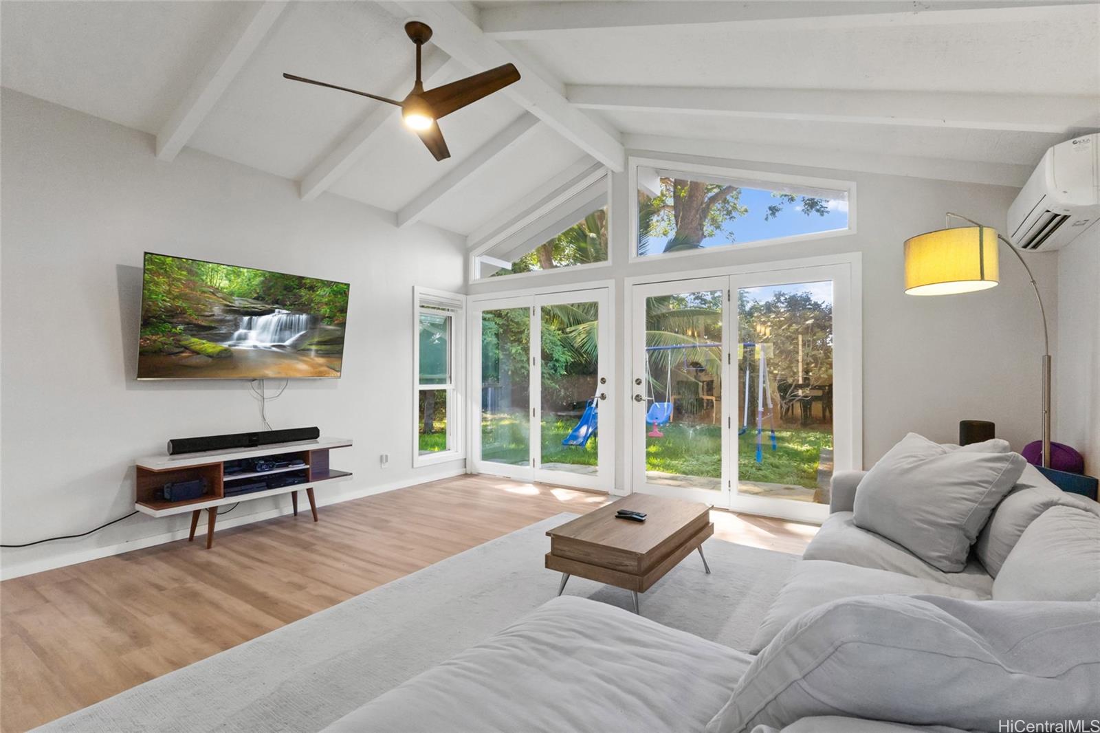 [0] => This single-level home in desirable Niu Valley blends modern upgrades with everyday comfort. Inside, enjoy a bright renovated open kitchen, remodeled bathrooms—including a primary suite with a walk-in shower—plus new LVP flooring, drywall, paint, and split A/Cs throughout. A separate guest Ohana suite with private entrance and bathroom adds flexibility for extended living or guests. Major improvements include completely new electrical wiring with dual 100-amp panels, replaced/re-lined sewer lines, a PV system with battery backup, and an EV charging port. A new roof and carport roof provide peace of mind for years to come. Outdoors, the yard offers fruit trees—starfruit, lemon, and coconut—along with a large storage shed. Set in the cool, quiet surroundings of Niu Valley, this move-in ready home combines convenience, thoughtful upgrades, and a lifestyle close to schools, shopping, dining, and freeway access. One or more photos have been enhanced.  The information herein may contain inaccuracies and is provided without warranty or guarantee. Buyer must independently verify any information deemed material fact.