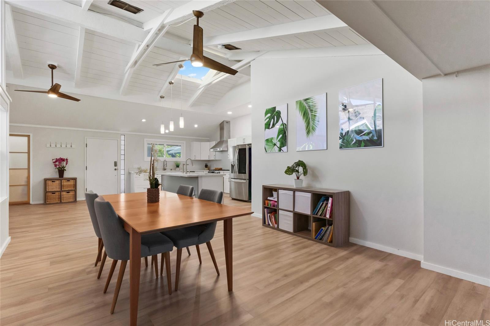 This single-level home in desirable Niu Valley blends modern upgrades with everyday comfort. Inside, enjoy a bright renovated open kitchen, remodeled bathrooms—including a primary suite with a walk-in shower—plus new LVP flooring, drywall, paint, and split A/Cs throughout. A separate guest Ohana suite with private entrance and bathroom adds flexibility for extended living or guests. Major improvements include completely new electrical wiring with dual 100-amp panels, replaced/re-lined sewer lines, a PV system with battery backup, and an EV charging port. A new roof and carport roof provide peace of mind for years to come. Outdoors, the yard offers fruit trees—starfruit, lemon, and coconut—along with a large storage shed. Set in the cool, quiet surroundings of Niu Valley, this move-in ready home combines convenience, thoughtful upgrades, and a lifestyle close to schools, shopping, dining, and freeway access. One or more photos have been enhanced. The information herein may contain inaccuracies and is provided without warranty or guarantee. Buyer must independently verify any information deemed material fact. Listing by: Redfin Corporation (808) 276-9186