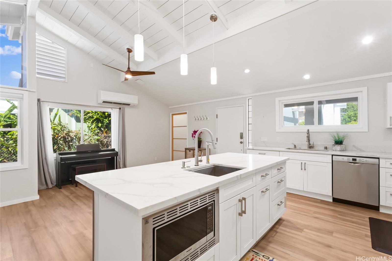 string(1133) "This single-level home in desirable Niu Valley blends modern upgrades with everyday comfort. Inside, enjoy a bright renovated open kitchen, remodeled bathrooms—including a primary suite with a walk-in shower—plus new LVP flooring, drywall, paint, and split A/Cs throughout. A separate guest Ohana suite with private entrance and bathroom adds flexibility for extended living or guests. Major improvements include completely new electrical wiring with dual 100-amp panels, replaced/re-lined sewer lines, a PV system with battery backup, and an EV charging port. A new roof and carport roof provide peace of mind for years to come. Outdoors, the yard offers fruit trees—starfruit, lemon, and coconut—along with a large storage shed. Set in the cool, quiet surroundings of Niu Valley, this move-in ready home combines convenience, thoughtful upgrades, and a lifestyle close to schools, shopping, dining, and freeway access. One or more photos have been enhanced.  The information herein may contain inaccuracies and is provided without warranty or guarantee. Buyer must independently verify any information deemed material fact."