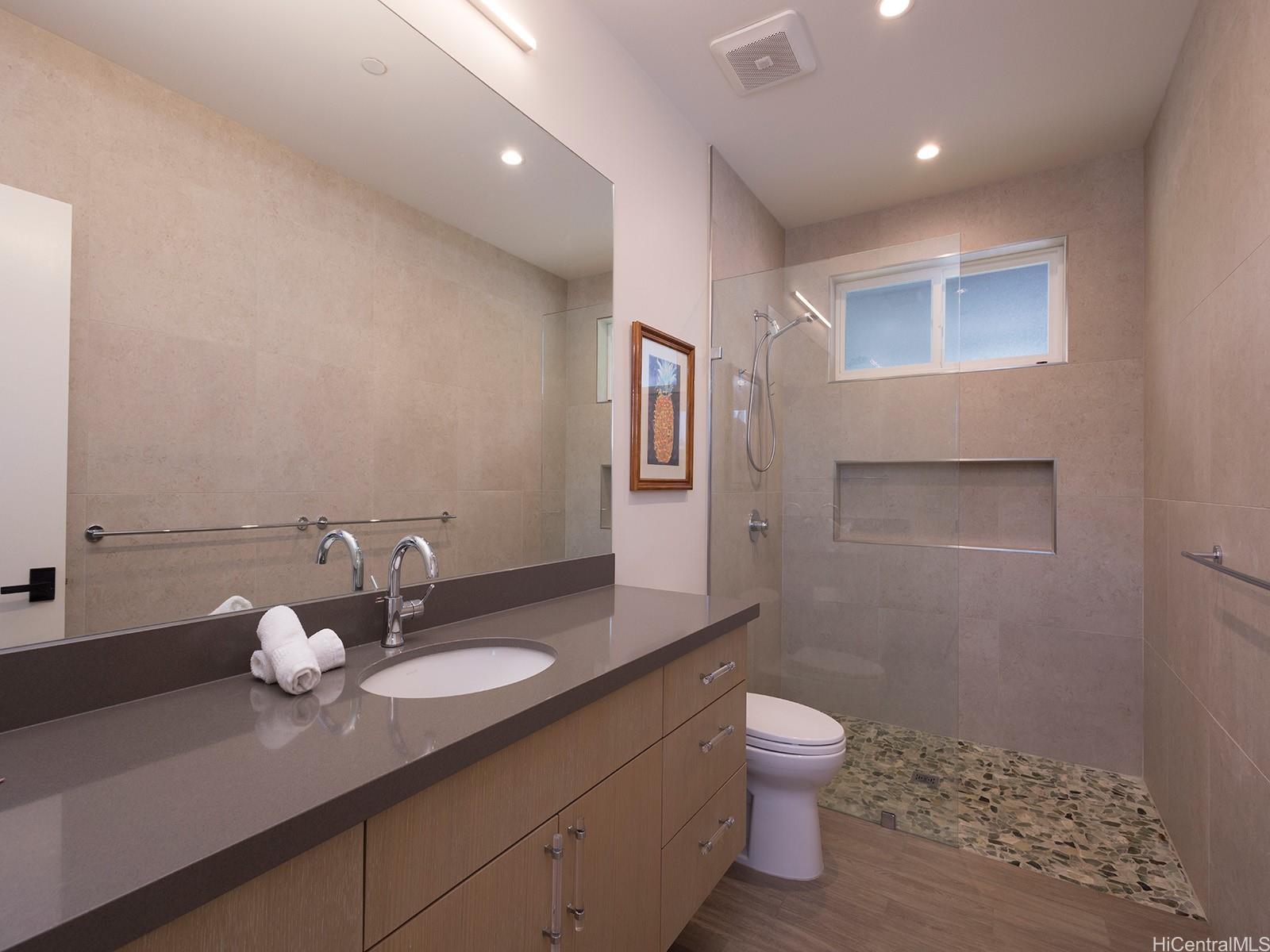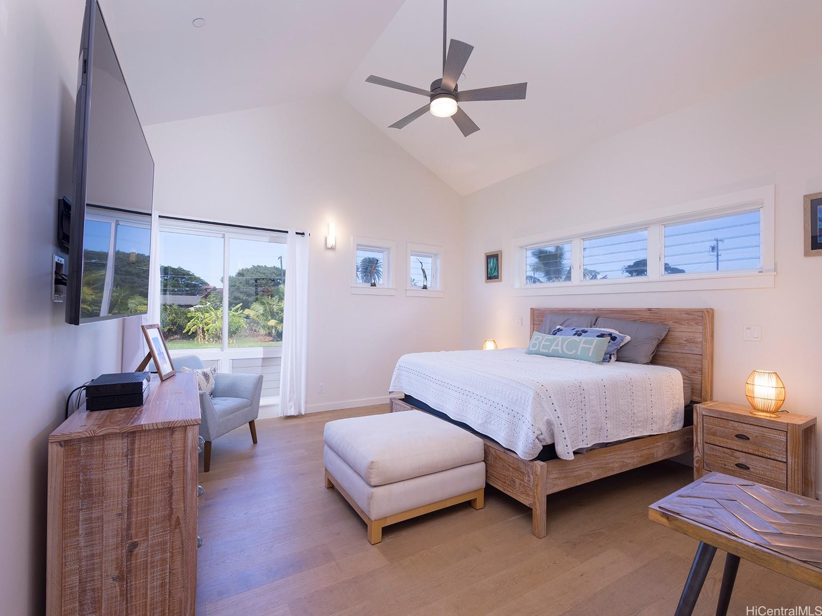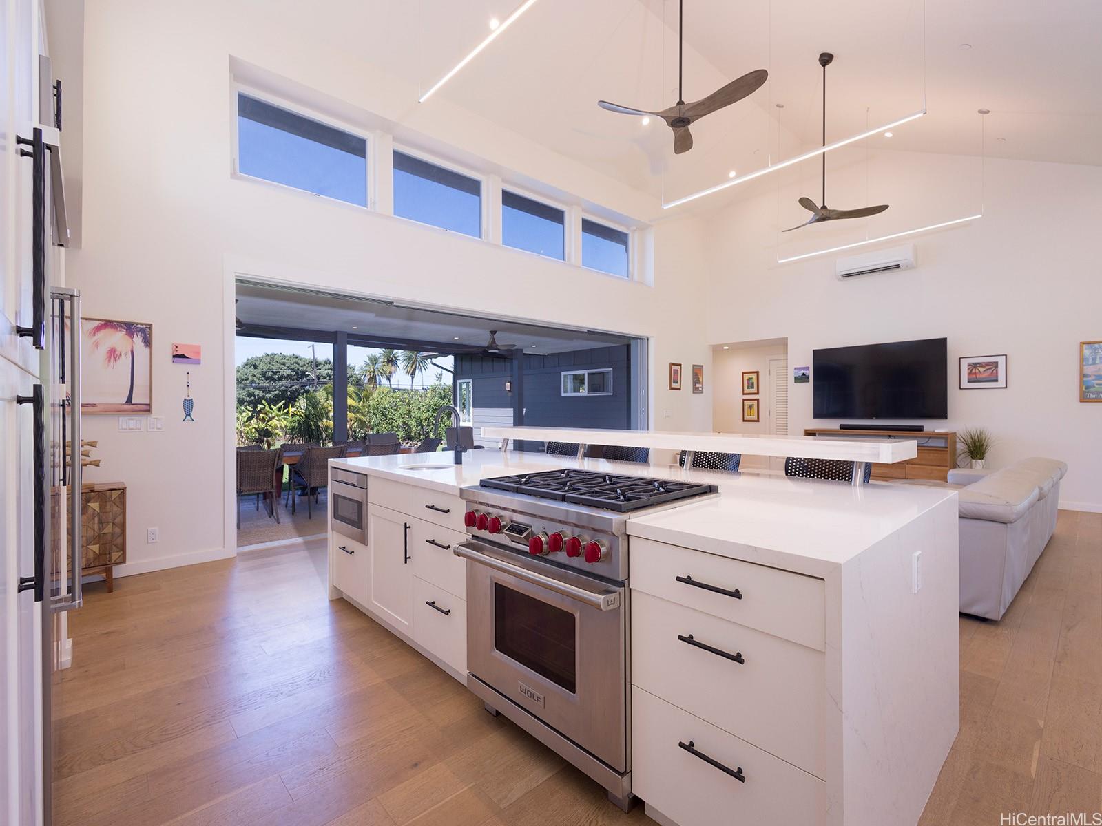 string(1195) "Welcome to Hale Laule'a. This custom-built North Shore Estate was designed by local architect Geoffrey Lewis and completed in 2021. This stunning ranch-style home is thoughtfully designed for island living. Features include vaulted ceilings, large windows, and an abundance of natural light that seamlessly connect the interior to the natural elements of the North Shore. The home offers open-air living with a covered lanai and expansive retractable glass and screen doors. Each of the three bedrooms is an en-suite, equipped with its own full bath. The home offers a versatile office or den off the main entry, ideally suited for a home office, guest room, or playroom, complete with an adjacent full bath for added convenience. The half bath is located off the main living area, ideal for guests and entertaining. Situated on over an acre of country-zoned land, this property includes mature tropical fruit trees and the ideal footprint for horse pasture and custom pool. A large rock wall lines Kamehameha Highway, automatic gate, and a turn-in point. The beach access is less than 500 feet from the driveway, offering you easy access to the world-famous beaches and surf of the North Shore."