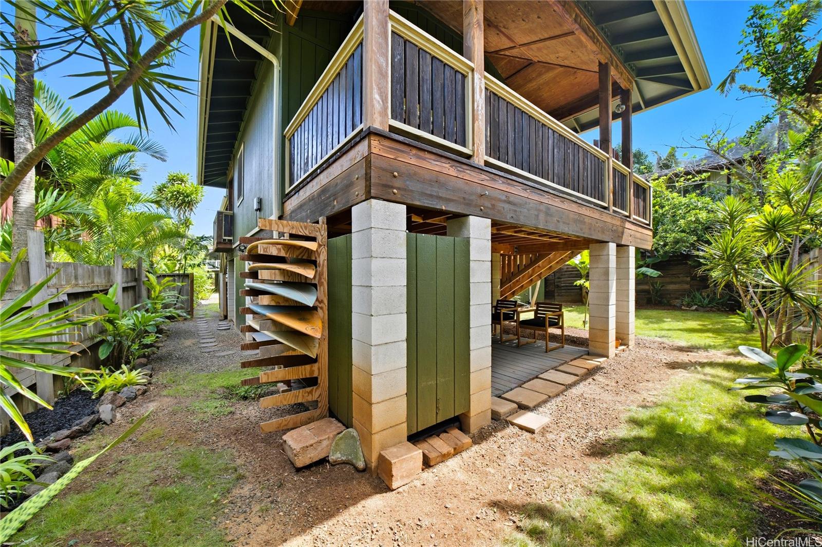Location, location, location! Beautifully renovated legal duplex with deeded beach access in the desirable Rocky Pt neighborhood. Tucked off the main road on a quiet private beachside lane, it’s somehow both hidden and central to one of the North Shore’s most versatile beaches. Whether you surf, paddle, snorkel, or stroll the sand, Rocky Pt offers it all. Walk to world-famous waves like Sunset Beach and Pipeline, or to lesser-known, uncrowded spots. Adjacent bike path provides safe access to school, neighborhood park, Ted’s Bakery, Foodland, Sharks Cove, and more. In 2016, the original home was lifted, expanded, and renovated with thoughtful, eco-friendly finishing touches throughout. Designed to harness cooling trade winds and scenic views, the primary home has 3 beds, 1.5 baths, and a covered deck that's perfect for relaxing and entertaining. The second unit is a charming 1 bed, 1 bath—ideal for guests, in-laws, or rental income. Covered parking under the house, office area, outdoor showers, and ample room for home gym, workshop, surfboard storage, etc. Embrace the laidback North Shore lifestyle at this exceptional Rocky Point home where comfort and coastal living come together. Listing by: Team Real Estate, Inc. (808) 497-0036