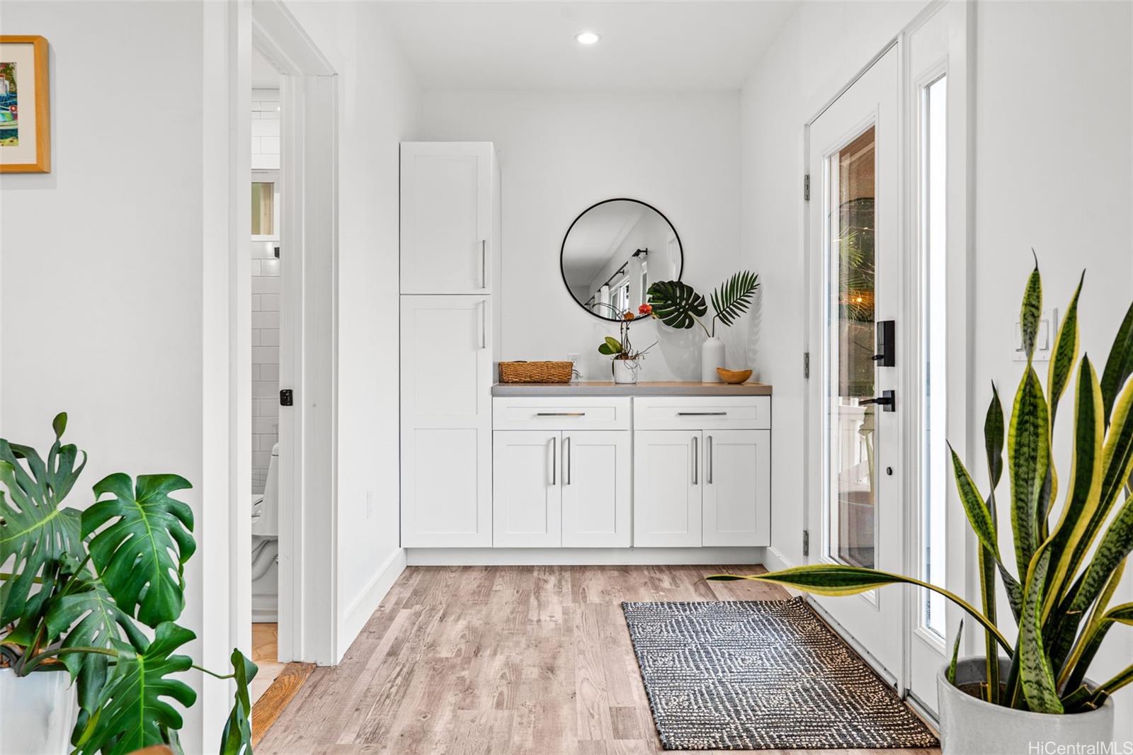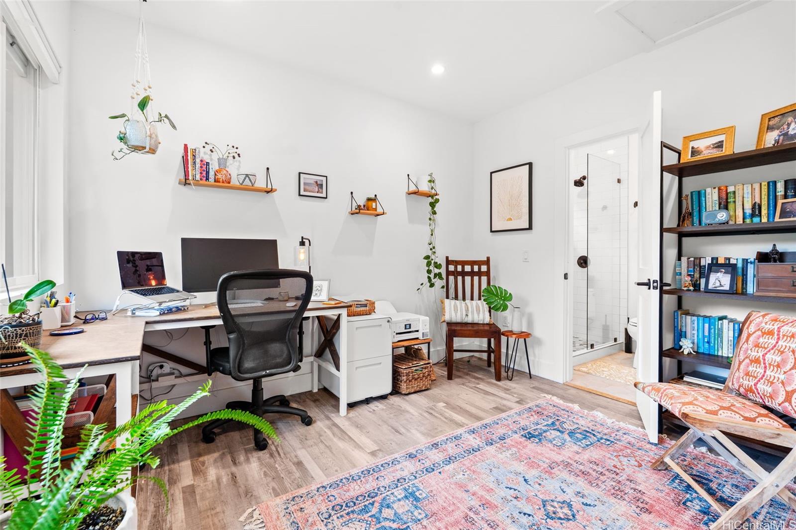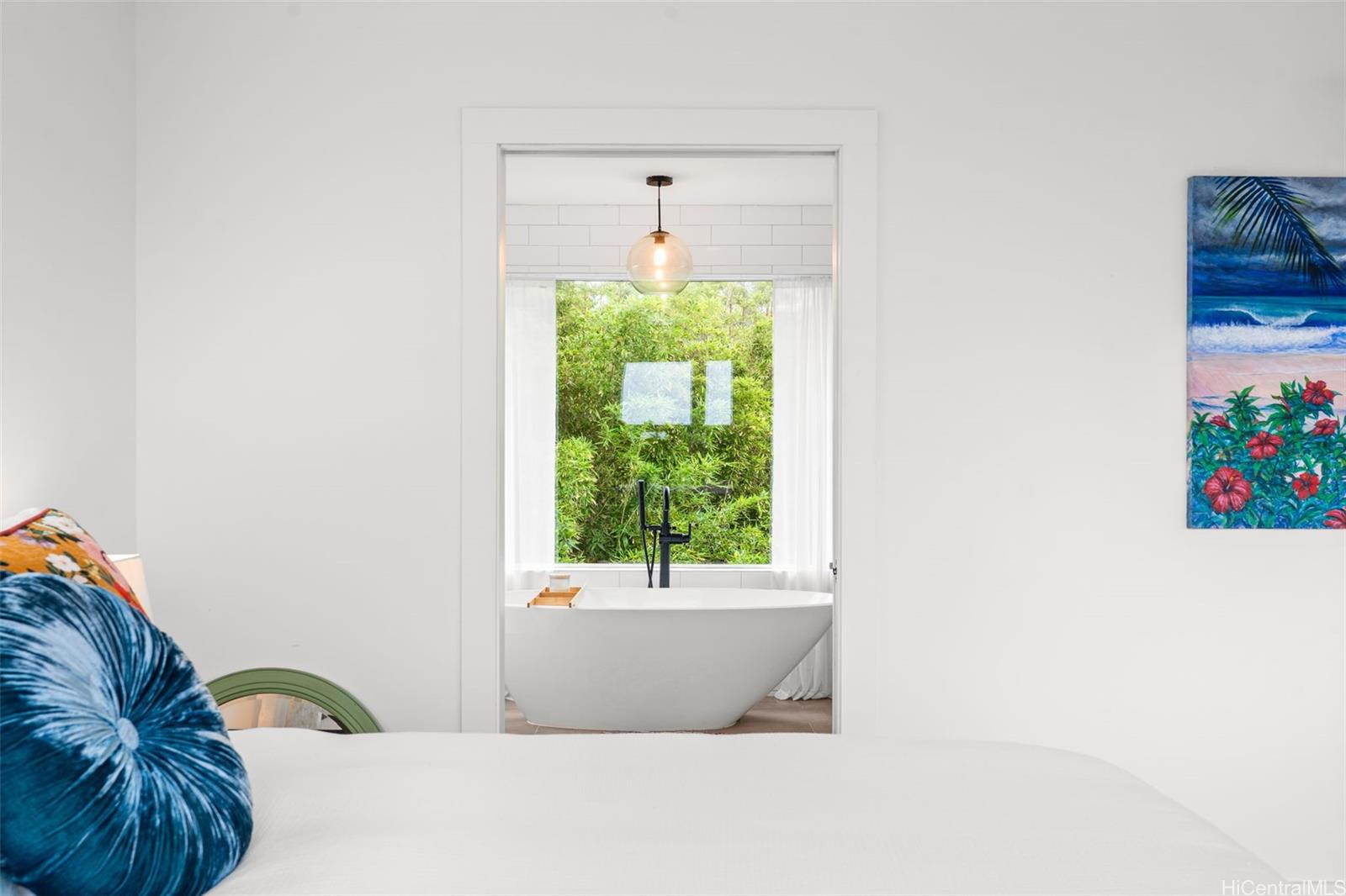 A large wraparound lanai anchors the home, creating a seamless indoor-outdoor connection. Ideal for entertaining or quiet moments alike, the lanai features a dedicated outdoor dining area with a full dining table, surrounded by integrated tropical planting that enhances privacy while framing the dramatic ocean backdrop. This expansive outdoor living space becomes a natural extension of the home—perfect for sunset dinners, morning coffee, and year-round enjoyment of the North Shore lifestyle."