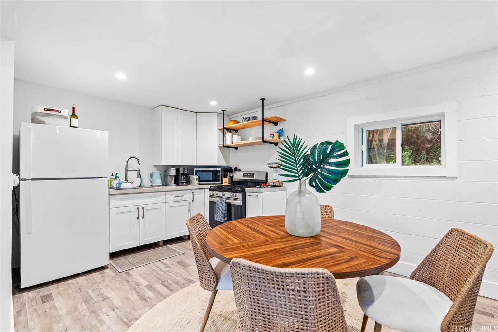 A large wraparound lanai anchors the home, creating a seamless indoor-outdoor connection. Ideal for entertaining or quiet moments alike, the lanai features a dedicated outdoor dining area with a full dining table, surrounded by integrated tropical planting that enhances privacy while framing the dramatic ocean backdrop. This expansive outdoor living space becomes a natural extension of the home—perfect for sunset dinners, morning coffee, and year-round enjoyment of the North Shore lifestyle. Listing by: Turtle Bay Condos & Realty LLC (808) 673-8681