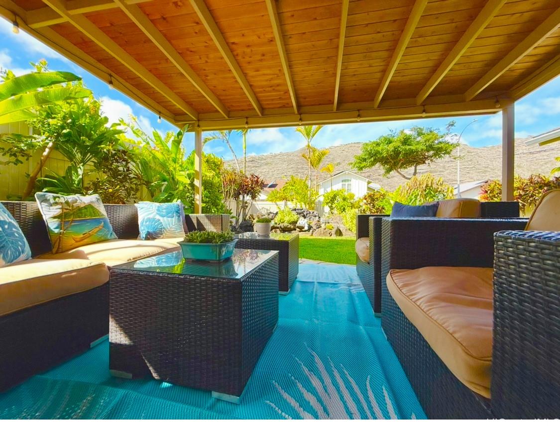 string(1123) "This move-in-ready, unparalleled charm in Kalama Valley is a blend of comfort and elegance. Rare single-story residence with dramatic mountain views from the front yard. This 4-bedroom, 2/0 bath embodies the essence of island living. New asphalt shingles 2022 roof, meticulously renovated with luxury vinyl plank floors, travertine tiled, 2 new baths, and flagstone-slated lanai ensure elegant modern feel throughout. Stylish ceiling fans enhance the home's inviting ambiance and tropical landscape. The interior and exterior paint create a bright and welcoming atmosphere. French doors gracefully open to reveal the soothing waterfall sound flowing into a cozy lava rock dipping pool. Enjoy your morning breakfast on the expansive covered in the front and uncioveted out back, both are with slate tiled and great barbecue areas, the heart of the home is the large open kitchen, designed for both functionality & style. It boasts a generous peninsula with/ elegant granite countertops, stainless steel appliances, and a separate bar area. Large living room has seamless indoor/outdoor living. First official open Sun, 2-5pm"