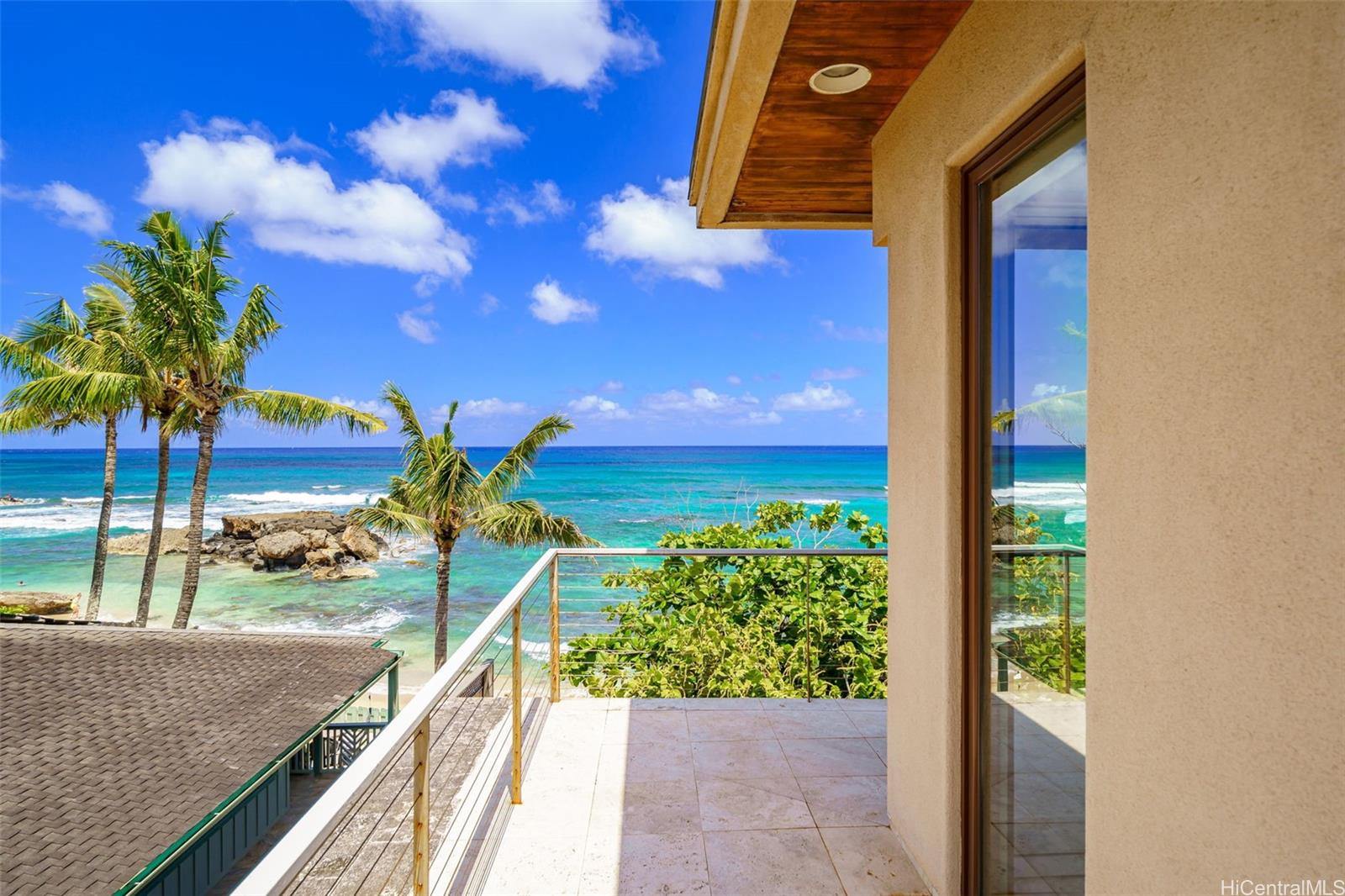 Welcome to the Alligator House! An AWARD-WINNING oceanfront masterpiece on Oahu’s legendary North Shore, designed by acclaimed architect Jeffery Long and honored with the ARCHITECTURAL GRAND AWARD for its stunning harmony with nature. This custom-designed 3-story beachfront residence offers 1,742 sqft of refined living space, featuring 2 bedrooms, 1.5 baths, a versatile bonus room to use as office/den, and luxury upgrades throughout including hardwood and tile flooring, central A/C, a gourmet kitchen with granite countertops, custom cabinetry, built-in wine cellar, and spa-inspired bath. Enjoy lanais on both levels, expansive decks, and a private rooftop with breathtaking views of Alligator Rock, one of Hawaii’s most iconic surf spots. Located just minutes from Haleiwa Town, Waimea Bay, Sharks Cove, Turtle Beach, and the Dole Plantation, this home places you at the heart of the North Shore lifestyle. Whether you’re seeking a tranquil retreat or a surfer’s paradise, this property offers a rare opportunity to own a slice of Hawaiian paradise. Recently appraised at $3.85M and sold As-Is. Live the dream. Watch the waves. Schedule your private showing. Homes like this won’t last long. Listing by: Real Broker (855) 450-0442