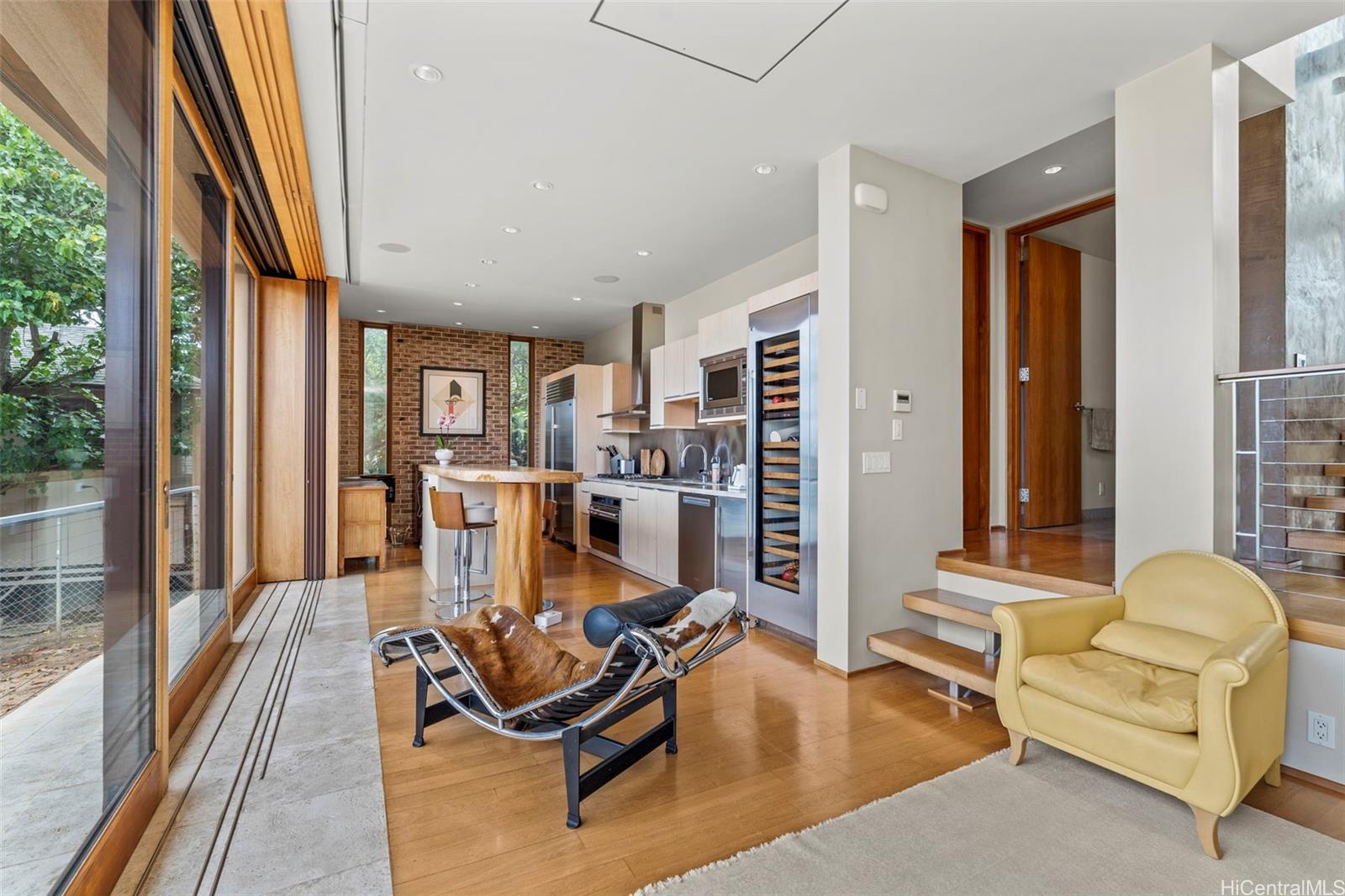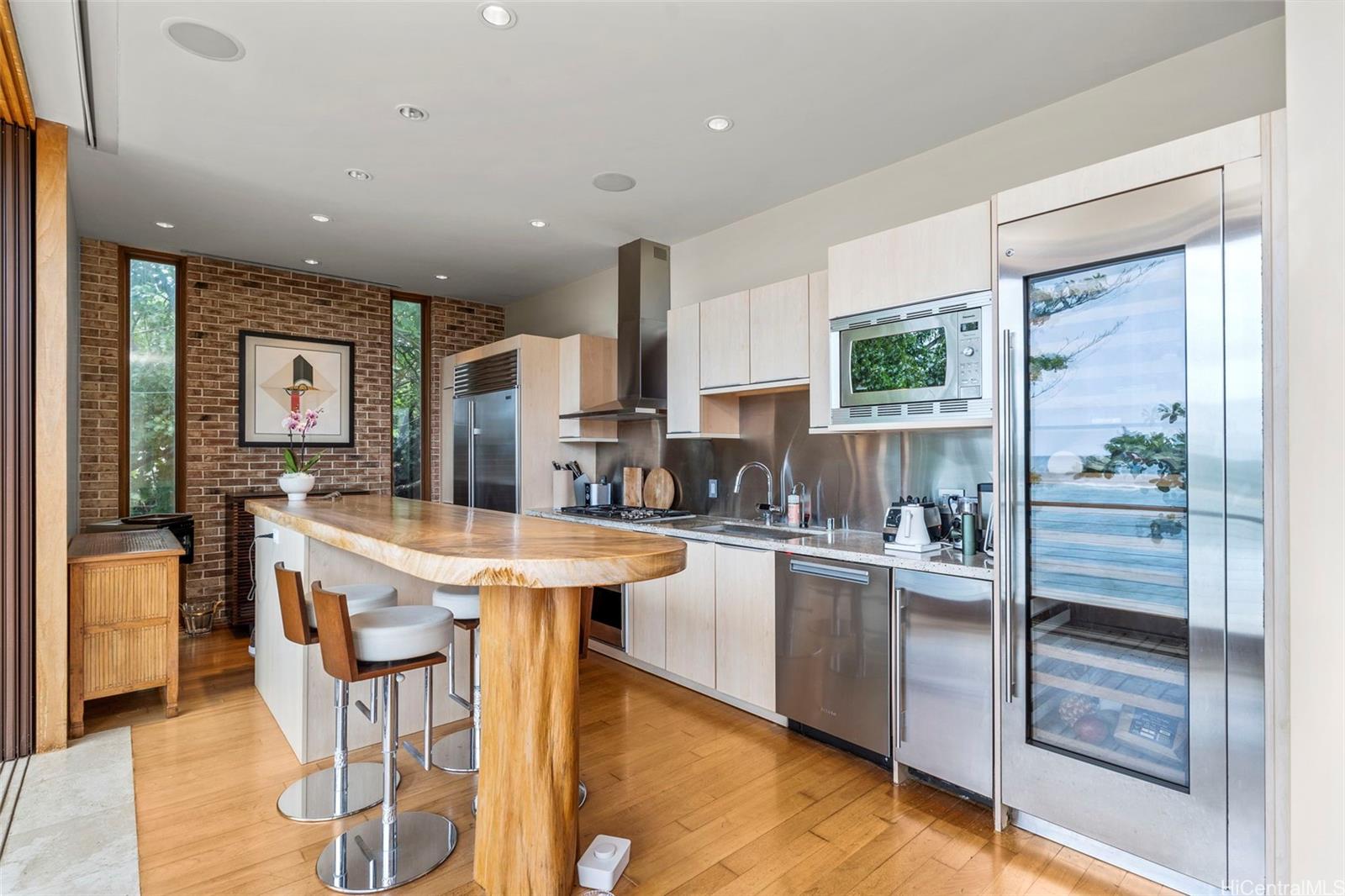 [0] => Welcome to the Alligator House! An AWARD-WINNING oceanfront masterpiece on Oahu’s legendary North Shore, designed by acclaimed architect Jeffery Long and honored with the ARCHITECTURAL GRAND AWARD for its stunning harmony with nature. This custom-designed 3-story beachfront residence offers 1,742 sqft of refined living space, featuring 2 bedrooms, 1.5 baths, a versatile bonus room to use as office/den, and luxury upgrades throughout including hardwood and tile flooring, central A/C, a gourmet kitchen with granite countertops, custom cabinetry, built-in wine cellar, and spa-inspired bath. Enjoy lanais on both levels, expansive decks, and a private rooftop with breathtaking views of Alligator Rock, one of Hawaii’s most iconic surf spots. Located just minutes from Haleiwa Town, Waimea Bay, Sharks Cove, Turtle Beach, and the Dole Plantation, this home places you at the heart of the North Shore lifestyle. Whether you’re seeking a tranquil retreat or a surfer’s paradise, this property offers a rare opportunity to own a slice of Hawaiian paradise. Recently appraised at $3.85M and sold As-Is. Live the dream. Watch the waves. Schedule your private showing. Homes like this won’t last long.