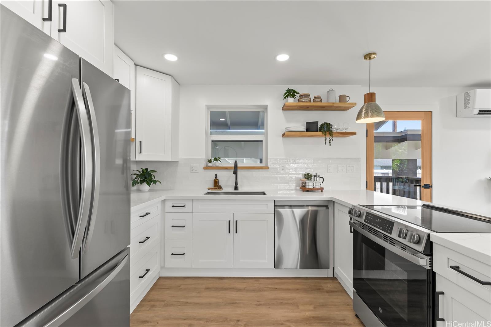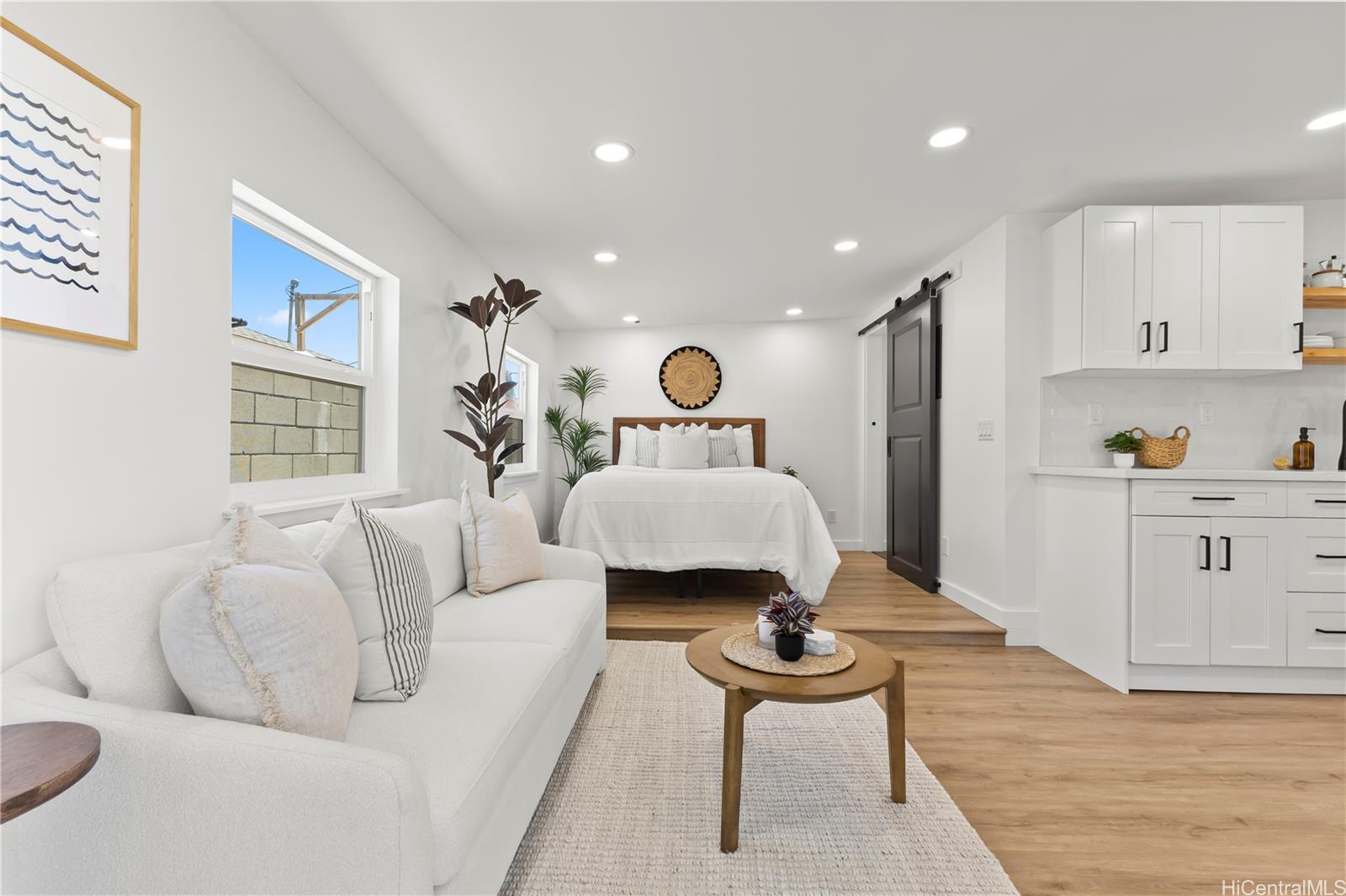 Today's #1 most sought after feature is multi-generational capability or rental income. This home checks all the boxes! Fully remodeled & transformed to offer refined simplicity in design, accented with modern finishes throughout: The main home is an 836 sf cozy 3 bedroom/1 bath open concept floor plan which manages to embrace the natural beauty of the outdoors while providing distinct living spaces. The 4th bedroom is a 360 sf DETACHED STUDIO with a full bath, kitchenette, spacious yard and private deck. Efficient use of space for both dwellings creates a sense of openness beyond the actual square footage. Brand new roof, Pella windows, double wall construction to interior and exterior, split AC in every bedroom and living area, stainless steel appliances, quartz counters, LVP and ceramic tile flooring, tiled shower surrounds with elegant shower glass paneling and recessed lighting. Each dwelling has its own private lanai and yard area, full sized washer & dryer and two parking each. Be the first to enjoy this newly remodeled home, hassle free and turn-key in Coconut Grove. Listing by: The LFG Group, Inc. (808) 840-7232