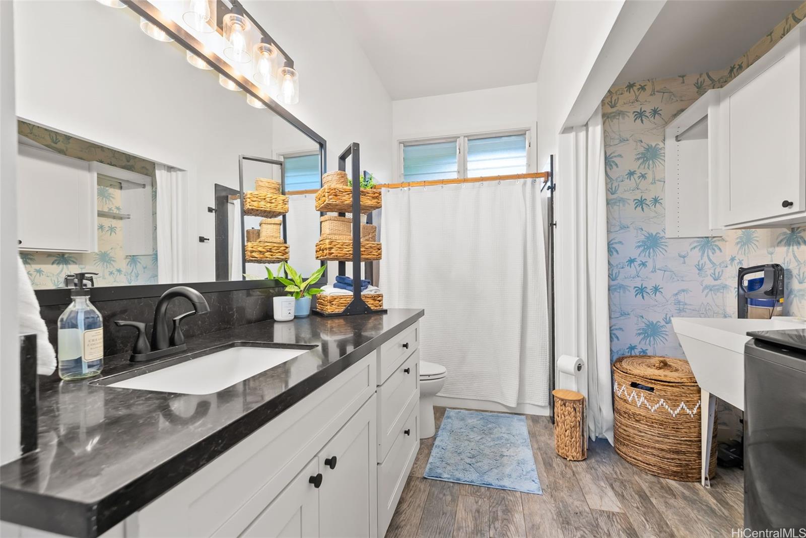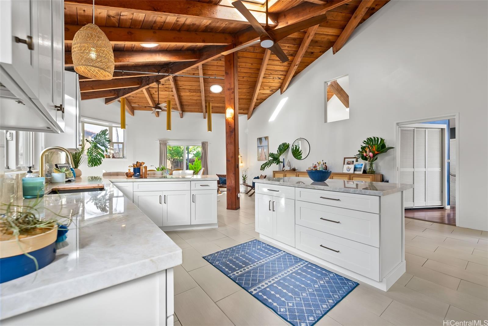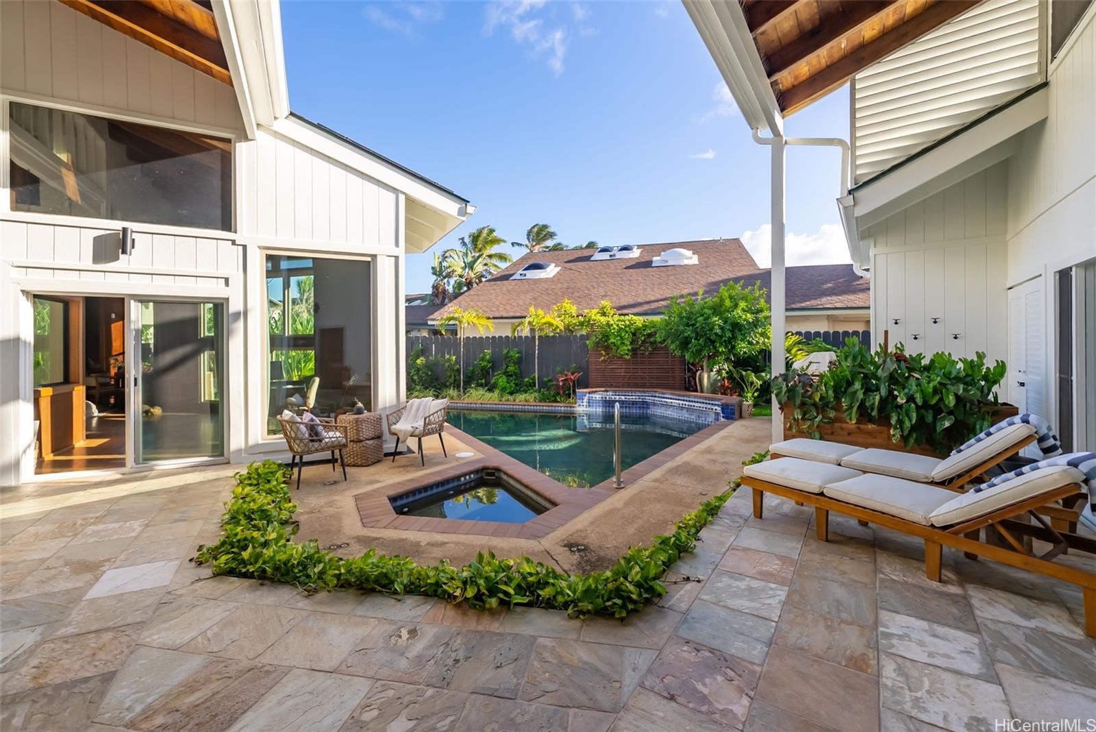 string(1029) "This architecturally striking home is nestled in the serene Kaimalino Neighborhood, situated in a tranquil cul-de-sac just steps from ocean access. Experience your personal oasis with a heated saltwater pool and spa in the courtyard. The property features a newly remodeled kitchen, split air conditioning, owned photovoltaic panels, and a fully-gated yard with an electric driveway gate, offering the Kailua beach lifestyle combined with luxury, convenience, and privacy. The home's artistic design is uniquely captivating, boasting walls of windows for enhanced views and natural light, along with vaulted ceilings and rich wood accents. The thoughtfully landscaped yard includes ample outdoor covered living space, perfect for poolside BBQs with friends after a day at the beach. Additionally, there's a bonus office space adjacent to the large family room, providing flexibility for personal use of this stunning home, along with a spacious storage unit above the garage.