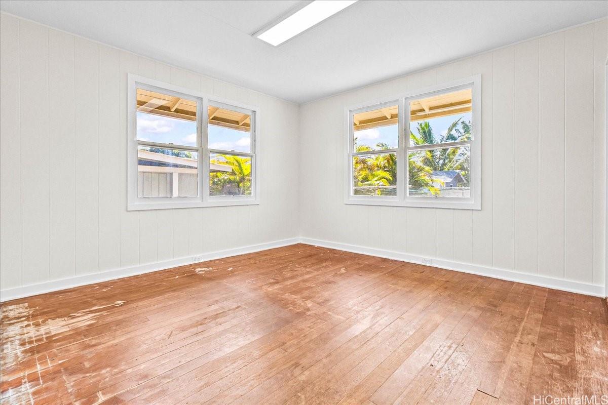 string(695) "Discover the possibilities in this charming single-level 3-bedroom, 2-bath home set on a large, level 6,814 sq. ft. lot in Kailua. Fresh interior paint brightens the space, while the original hardwood floors add character and are ready to be beautifully refinished. With some thoughtful improvements, this home has the potential to shine. Enjoy a huge kitchen with room to reimagine your ideal layout, along with a spacious yard featuring mature fruit trees in the backyard, a tranquil bonsai rock garden, fully usable outdoor space, and ample parking for multiple vehicles. An excellent opportunity for buyers looking to create their dream home in one of O‘ahu’s most desirable communities."