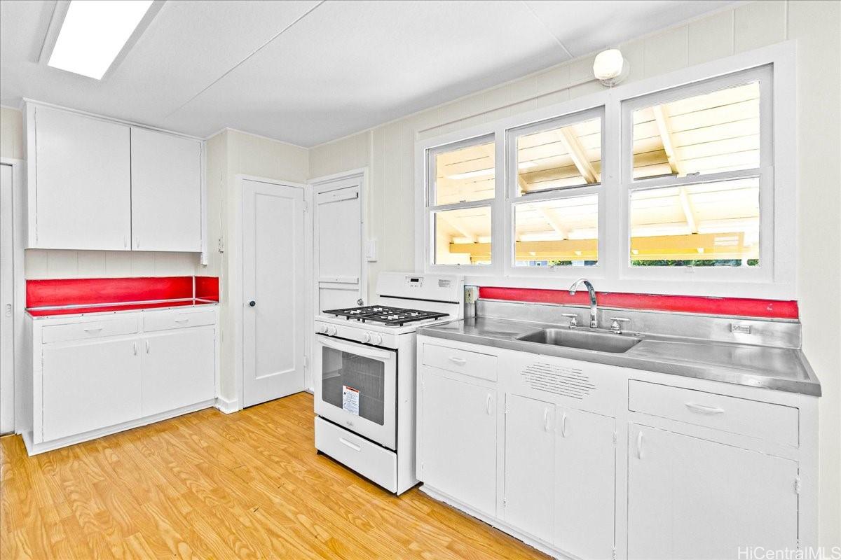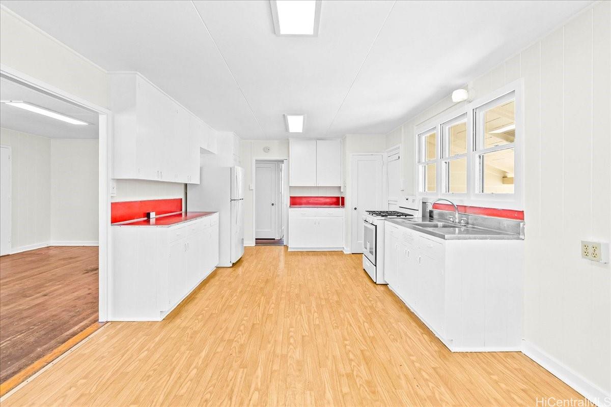 Discover the possibilities in this charming single-level 3-bedroom, 2-bath home set on a large, level 6,814 sq. ft. lot in Kailua. Fresh interior paint brightens the space, while the original hardwood floors add character and are ready to be beautifully refinished. With some thoughtful improvements, this home has the potential to shine. Enjoy a huge kitchen with room to reimagine your ideal layout, along with a spacious yard featuring mature fruit trees in the backyard, a tranquil bonsai rock garden, fully usable outdoor space, and ample parking for multiple vehicles. An excellent opportunity for buyers looking to create their dream home in one of O‘ahu’s most desirable communities. Listing by: Hawaii Modern Realty (808) 450-5652