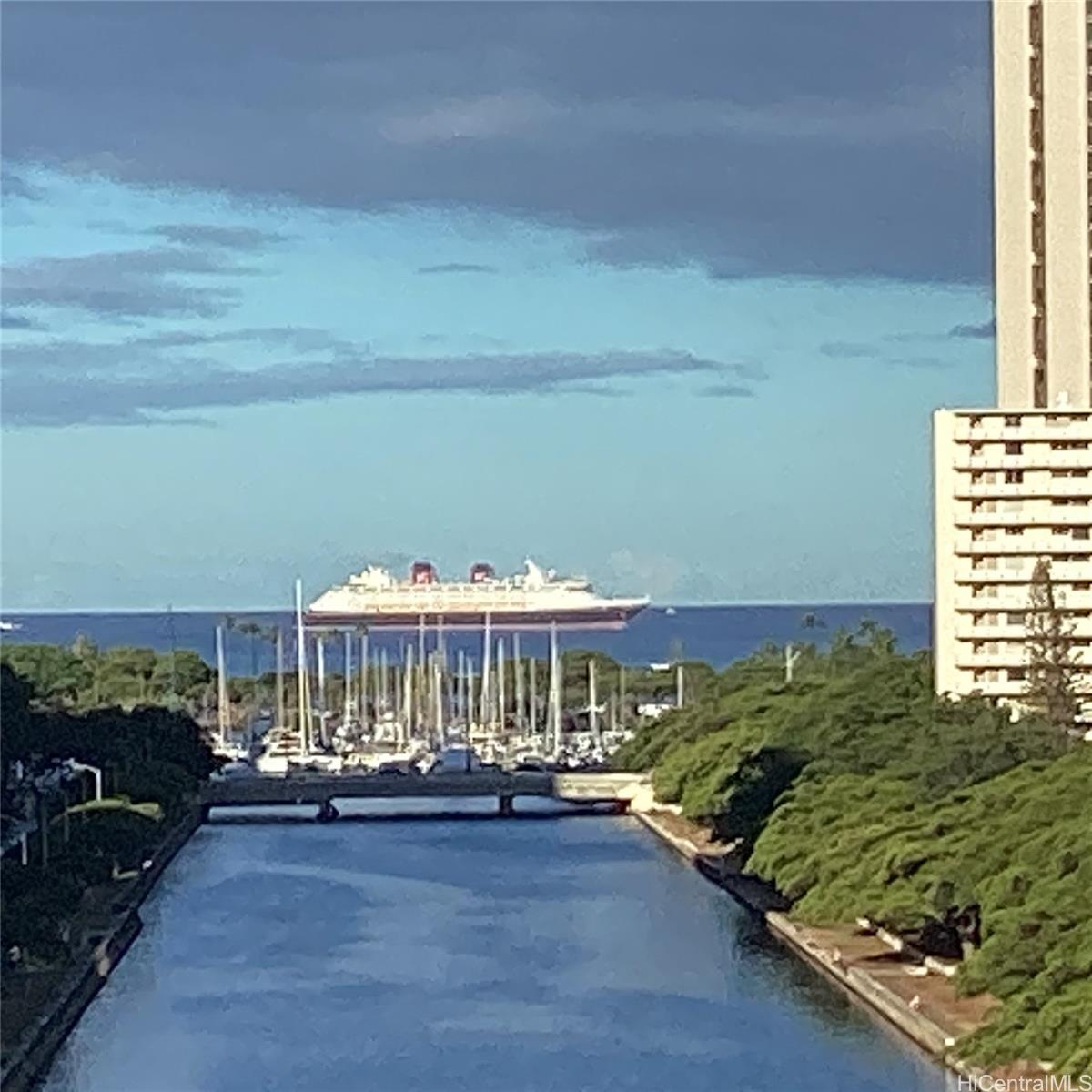 Unobstructed peaceful and serene views of the Ala Wai Canal leading to the ocean await you at Ala Wai Manor. Conveniently located at the entrance to Waikiki. Close to schools, parks, shopping and dining options, Convention Center, Ala Moana Shopping Center, and The University of Hawaii at Manoa. Floor to ceiling large windows bring in lots of natural lights to compliment the panoramic views of the Ala Wai Canal, marina, ocean & Diamond Head. 2 bedrooms, 1bath with washer/dryer in the unit. Unit parking located close to front entry. Great purchase for both first time home buyers as well as investors. Listing by: Aloha Properties, Inc. (808) 381-7474