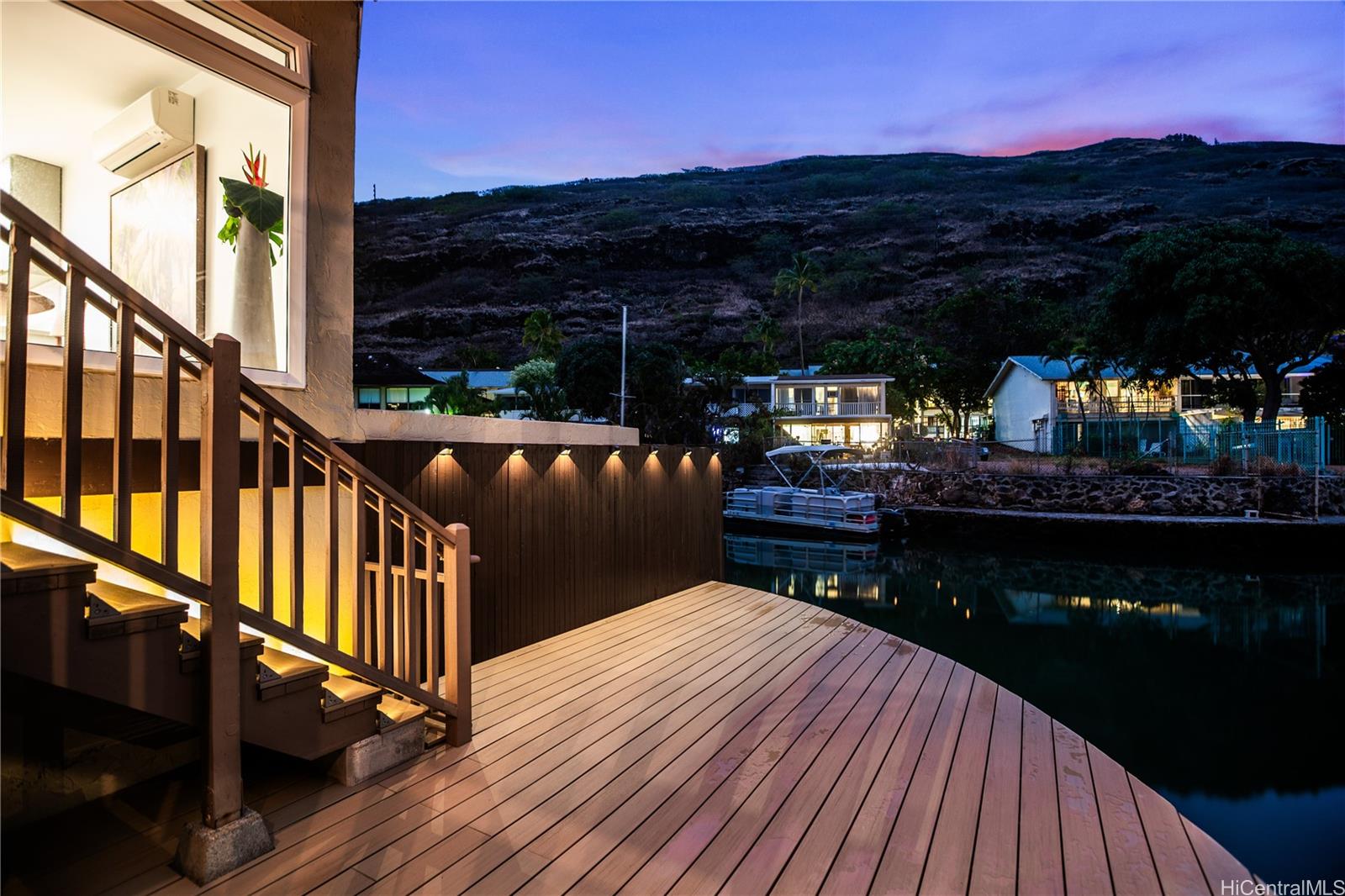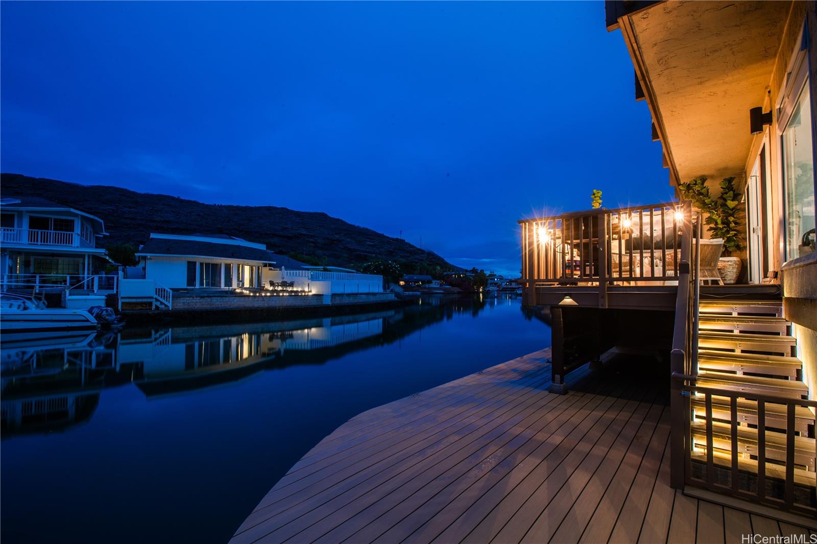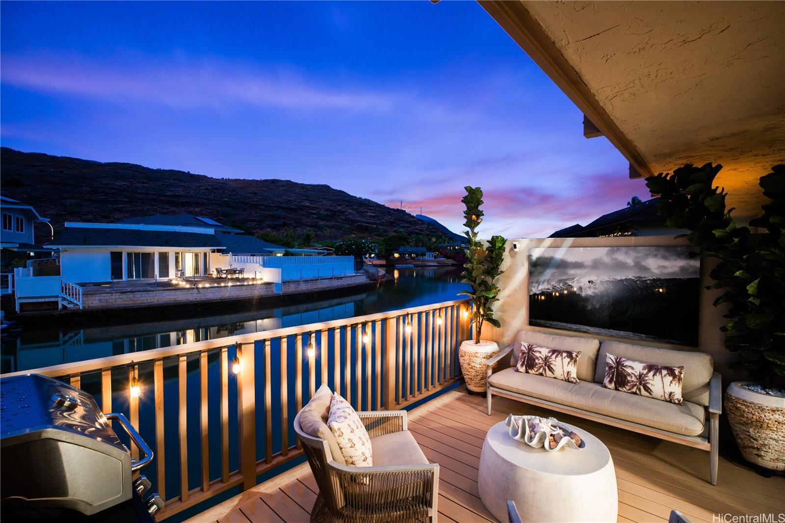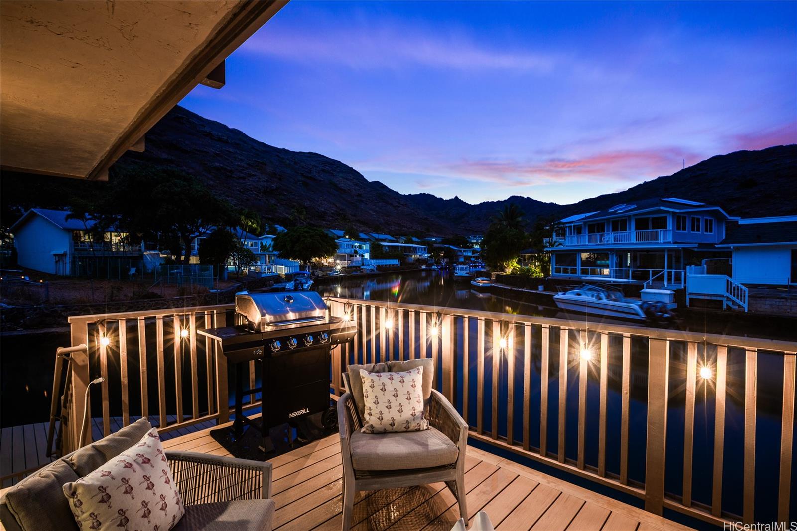 Newly remodeled 4BD/3BA corner-unit retreat with breathtaking marina and mountain views from nearly every room! Features top-of-the-line CAFE kitchen appliances, LG AI washer/dryer, designer finishes, motorized white-linen blinds, and five new premium split A/C systems. Enjoy luxury vinyl flooring, a stunning puka lava tile entry with a rock garden, and a private fenced area for pets: sliding glass doors and a fully floored and insulated large attic. Relax or entertain on matching wraparound Trex lanais and a brand-new, expansive Trex dock large enough for two boats, perfect for boating, SUPs, and jet skis! Enjoy resort-style living with a poolside cabana perfect for relaxing and entertaining. Experience open, airy living with tranquil island vibes. Live the dream in your peaceful tropical oasis where the marina meets the Pacific Ocean—luxury, comfort, and serenity on the marina! Listing by: Real Broker, LLC (808) 800-6637