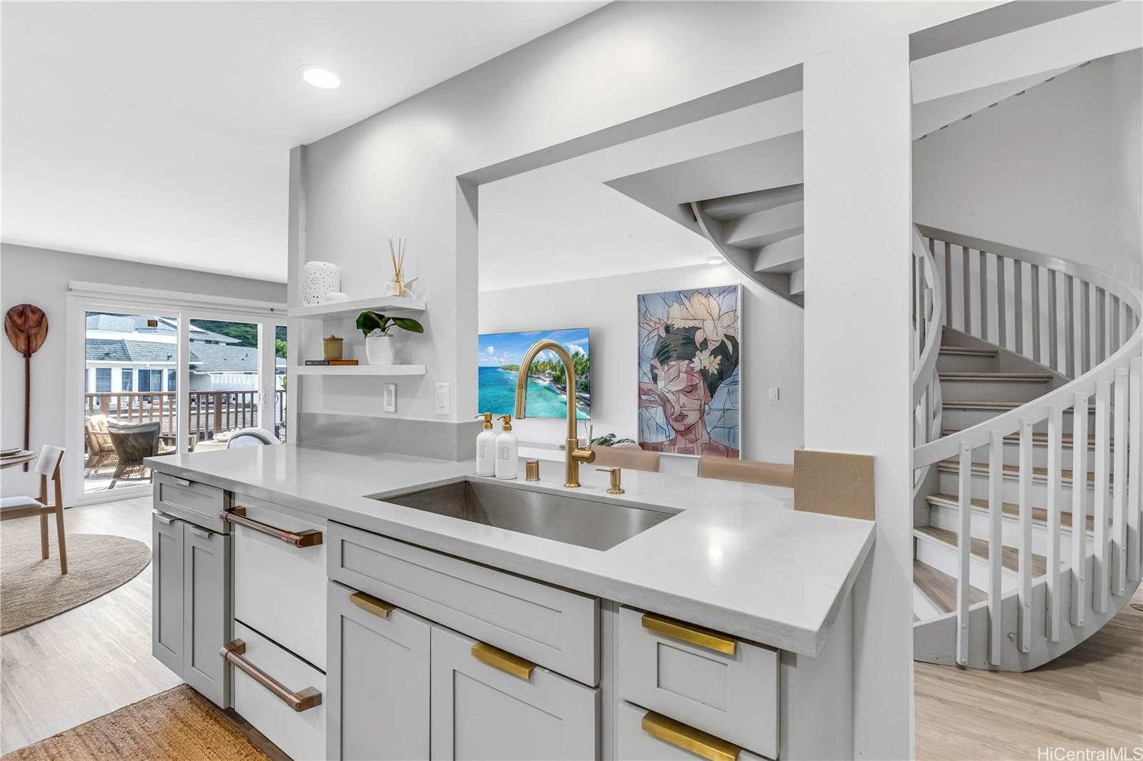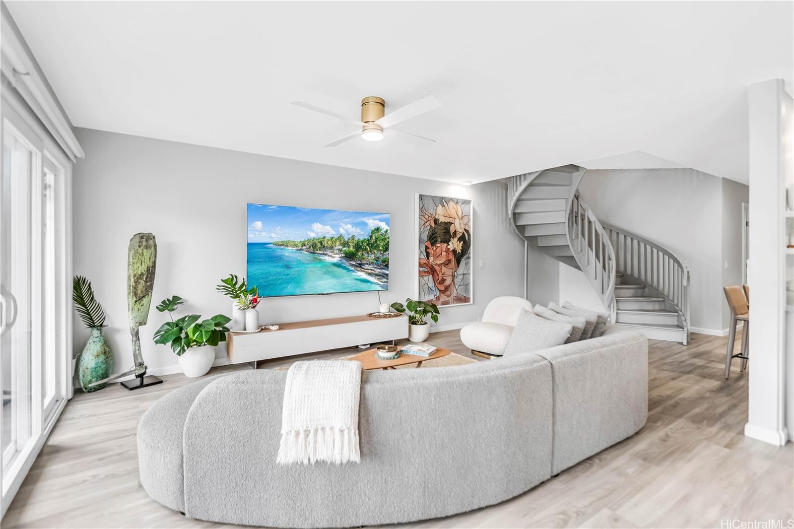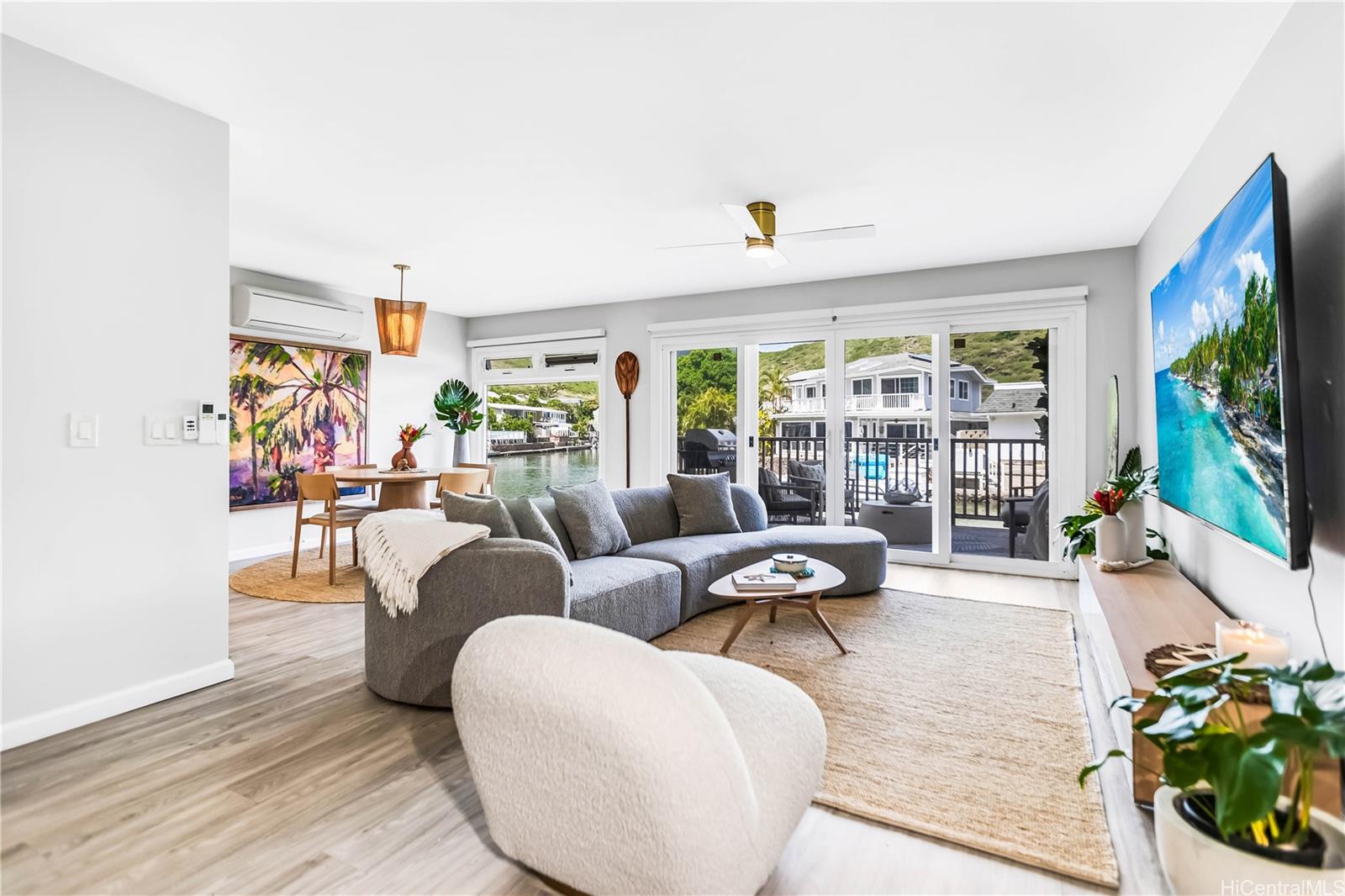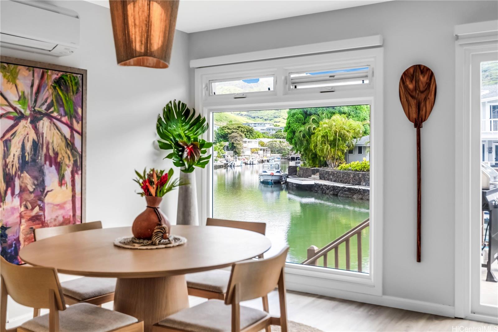Newly remodeled 4BD/3BA corner-unit retreat with breathtaking marina and mountain views from nearly every room! Features top-of-the-line CAFE kitchen appliances, LG AI washer/dryer, designer finishes, motorized white-linen blinds, and five new premium split A/C systems. Enjoy luxury vinyl flooring, a stunning puka lava tile entry with a rock garden, and a private fenced area for pets: sliding glass doors and a fully floored and insulated large attic. Relax or entertain on matching wraparound Trex lanais and a brand-new, expansive Trex dock large enough for two boats, perfect for boating, SUPs, and jet skis! Enjoy resort-style living with a poolside cabana perfect for relaxing and entertaining. Experience open, airy living with tranquil island vibes. Live the dream in your peaceful tropical oasis where the marina meets the Pacific Ocean—luxury, comfort, and serenity on the marina! Listing by: Real Broker, LLC (808) 800-6637