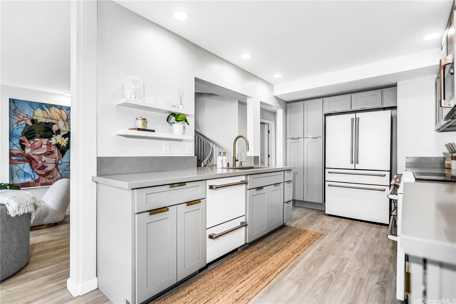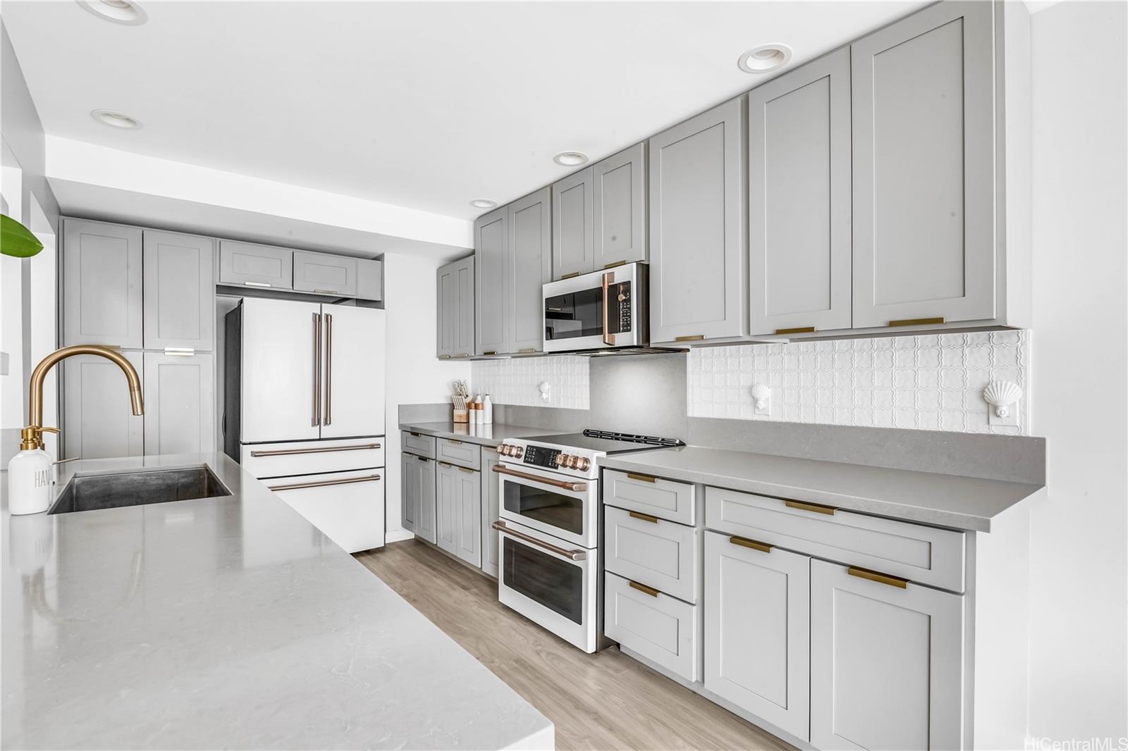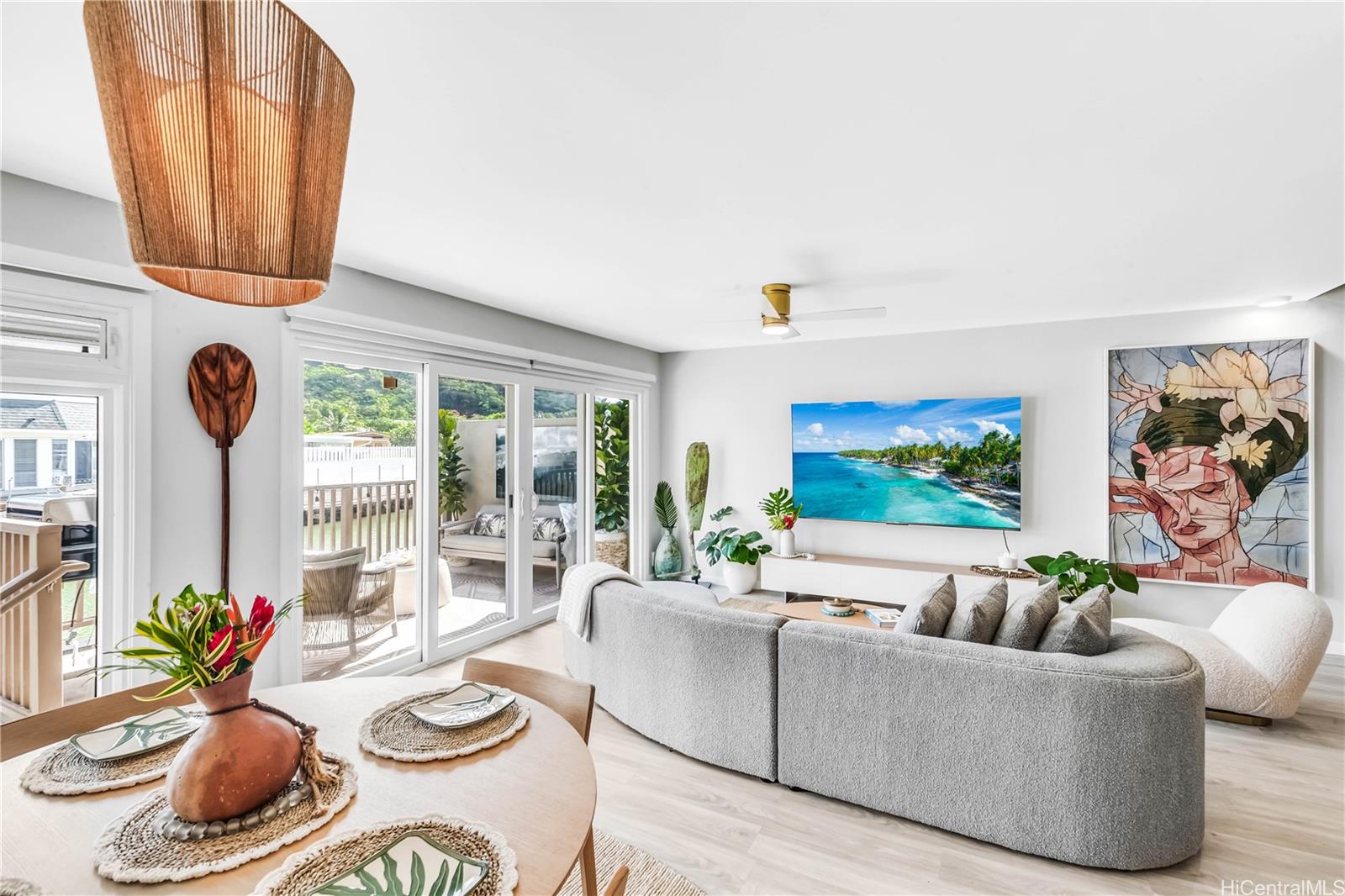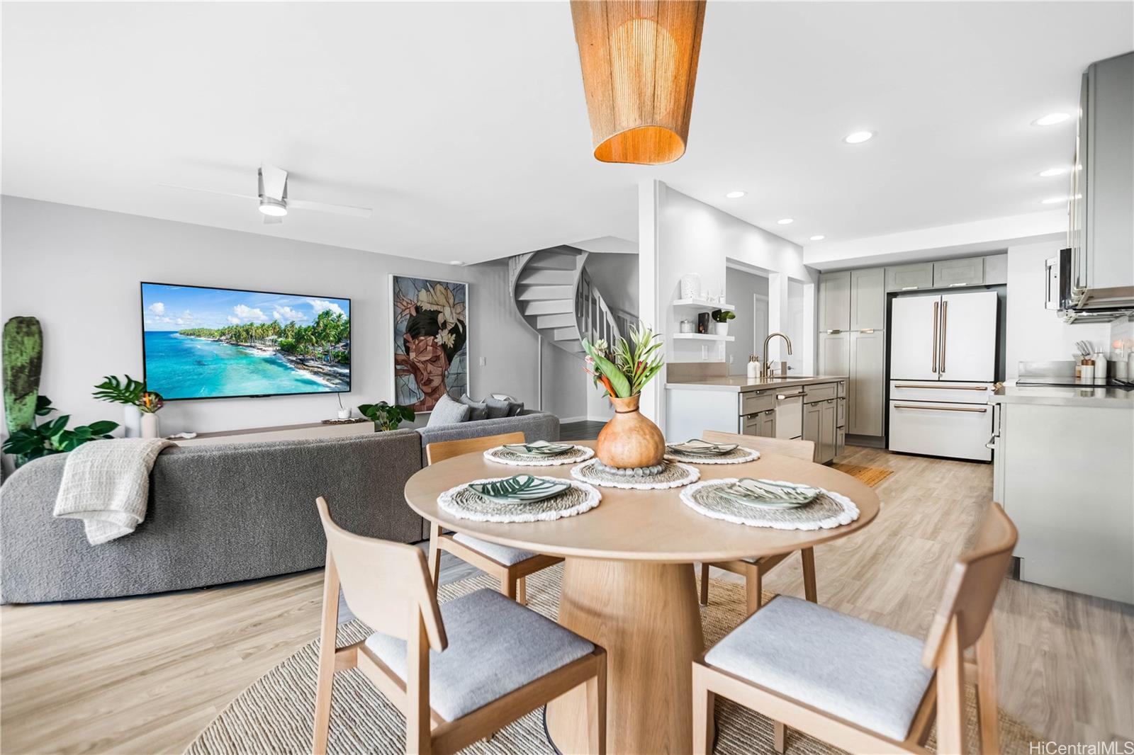 Newly remodeled 4BD/3BA corner-unit retreat with breathtaking marina and mountain views from nearly every room! Features top-of-the-line CAFE kitchen appliances, LG AI washer/dryer, designer finishes, motorized white-linen blinds, and five new premium split A/C systems. Enjoy luxury vinyl flooring, a stunning puka lava tile entry with a rock garden, and a private fenced area for pets: sliding glass doors and a fully floored and insulated large attic. Relax or entertain on matching wraparound Trex lanais and a brand-new, expansive Trex dock large enough for two boats, perfect for boating, SUPs, and jet skis! Enjoy resort-style living with a poolside cabana perfect for relaxing and entertaining. Experience open, airy living with tranquil island vibes. Live the dream in your peaceful tropical oasis where the marina meets the Pacific Ocean—luxury, comfort, and serenity on the marina! Listing by: Real Broker, LLC (808) 800-6637