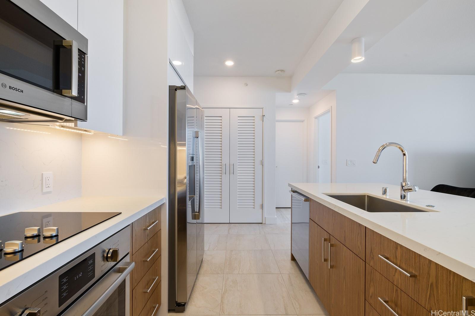 string(699) "Enjoy luxury convenient living on the 35th floor in Mid town Honolulu. Built in 2021,the unit is in Excellent Condition with 9 foot high ceilings with ceiling fans in the bedrooms and living room. Enjoy the ocean and mountain views from the living room, lanai and both bedrooms. Azure offers an exercise room, recreation room, movie theater, 4 grills and 2 cabanas, puppy park, 4 guest rooms for out of town visitors, and concierge services. The unit has two parking stalls and storage. Across the street from Ala Moana Center, Walmart, Sam's Club, great restaurants and much more. Very close to Magic Island and Ala Moana beach. Azure is fully covered with 100% hurricane nsurance."