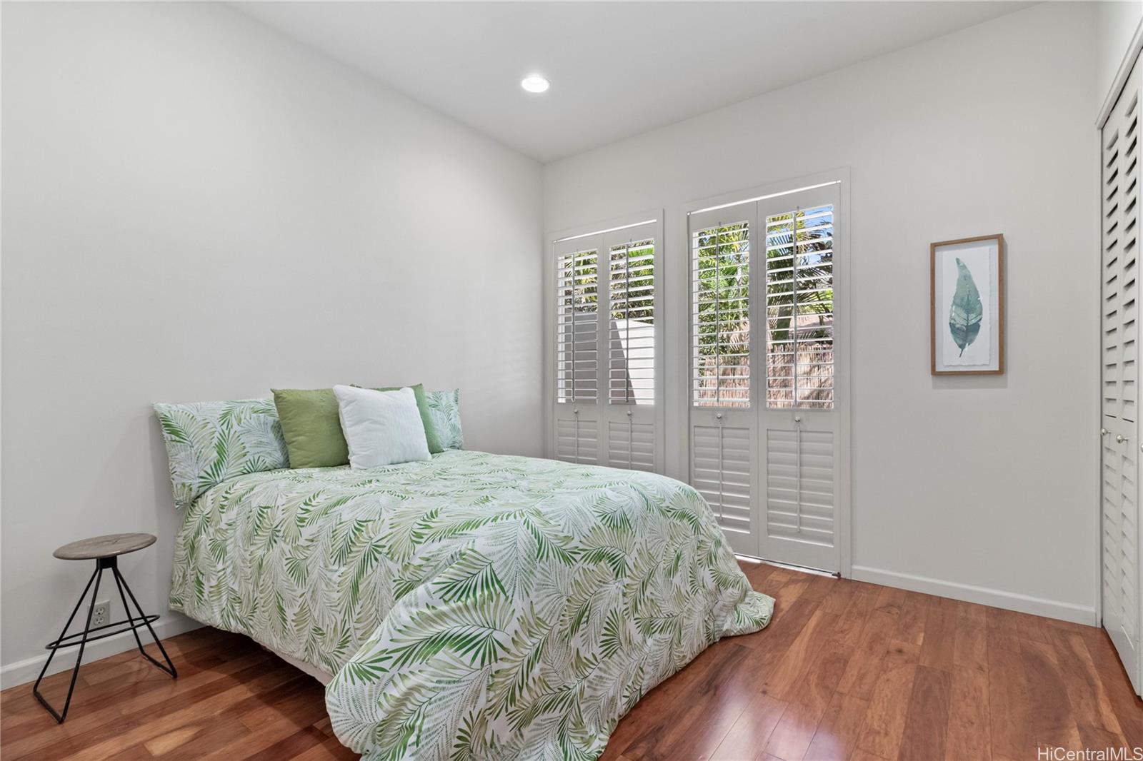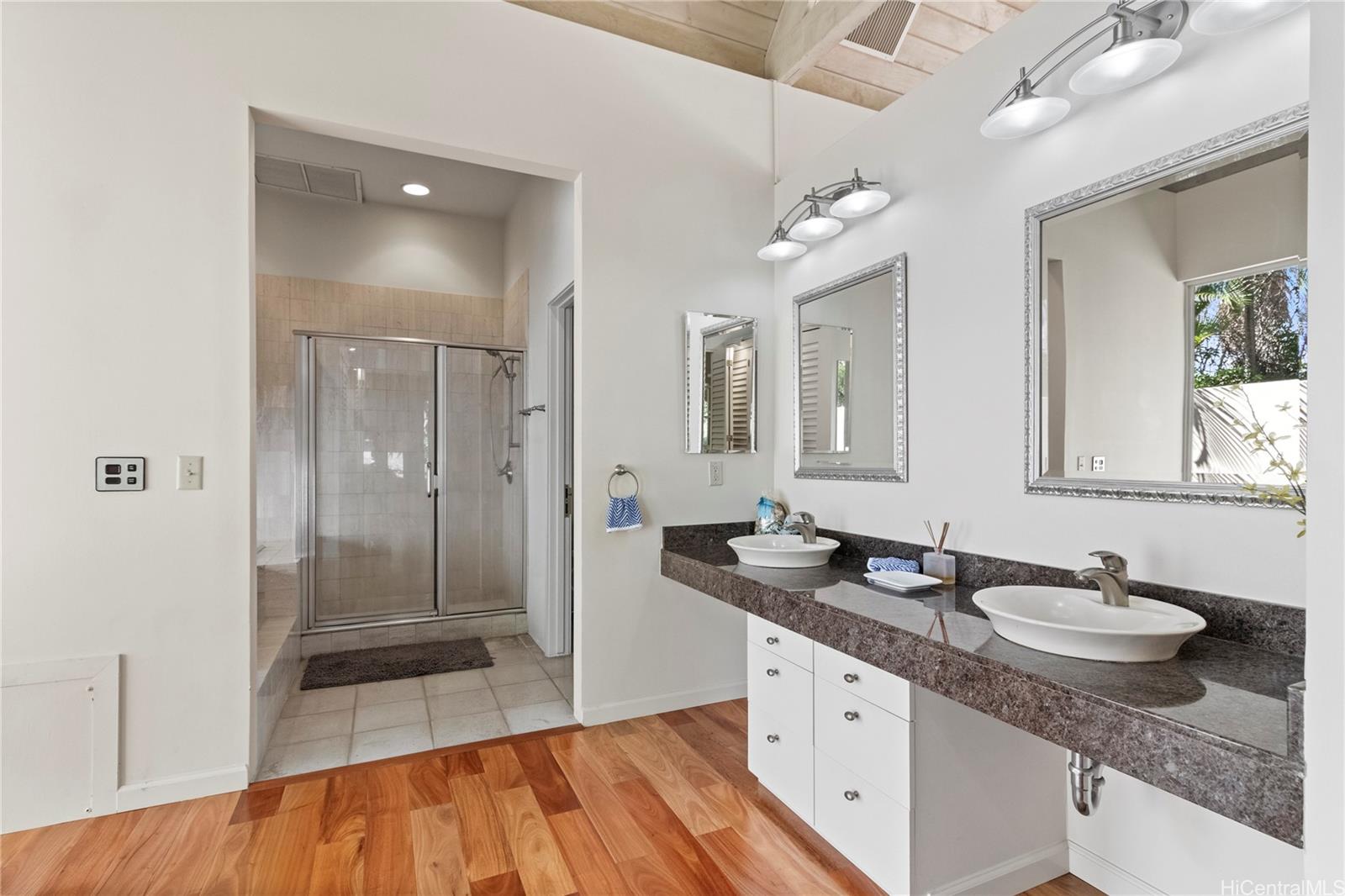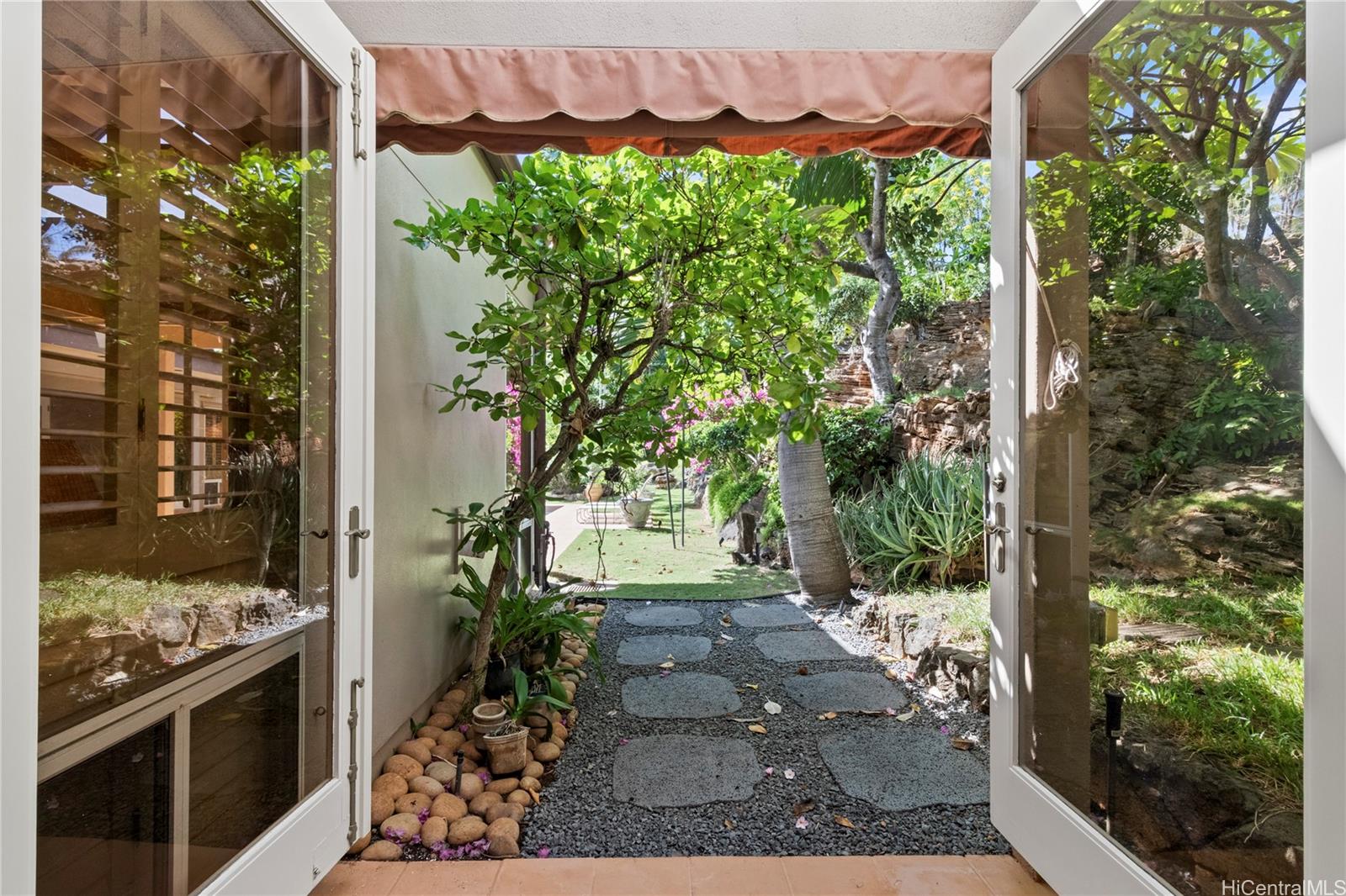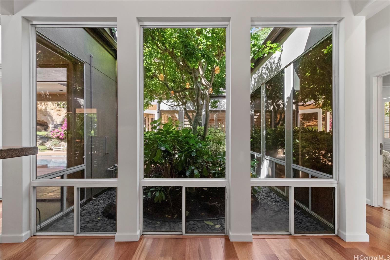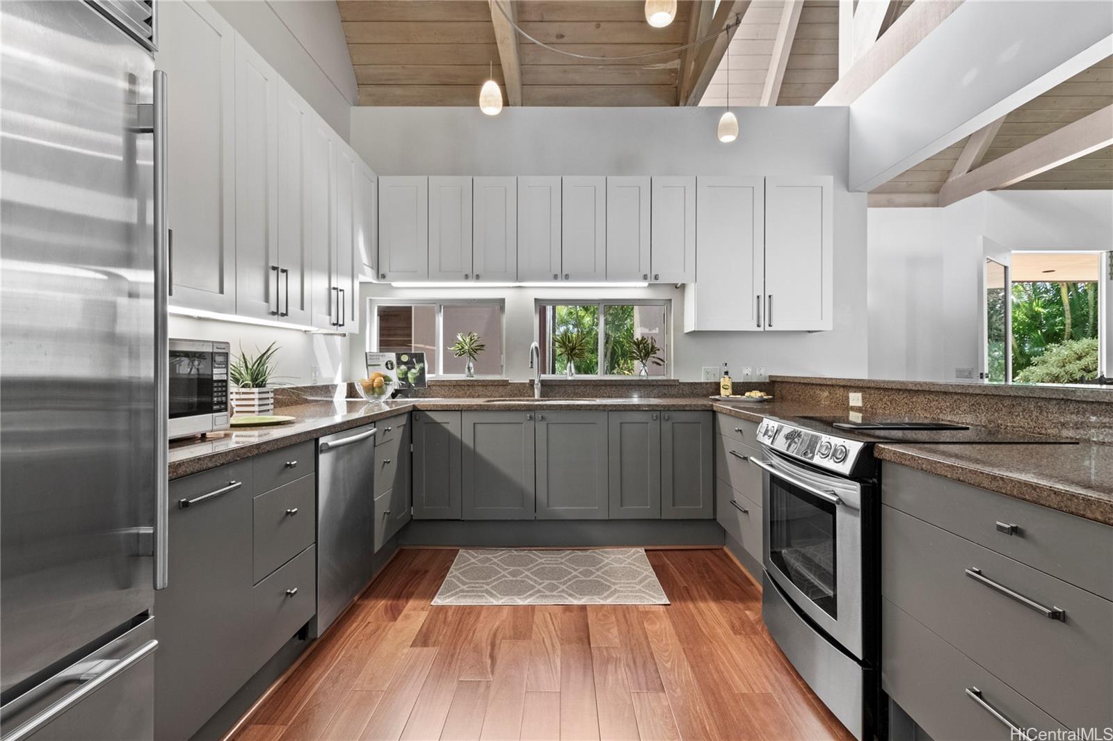 Enter through private gardens into this beautiful 4 bedroom/4 bath single level home that opens out to pool and nature setting in the back. Seamless indoor/outdoor living plus a separate bonus room above the garage. Fully walled in for privacy with new living room engineered wood floors, PV panels and glass panel garage doors. Dramatic open beams and windows throughout to catch the natural light. A serene and private setting. Welcome to your peaceful retreat. Listing by: Coldwell Banker Realty (808) 383-9787