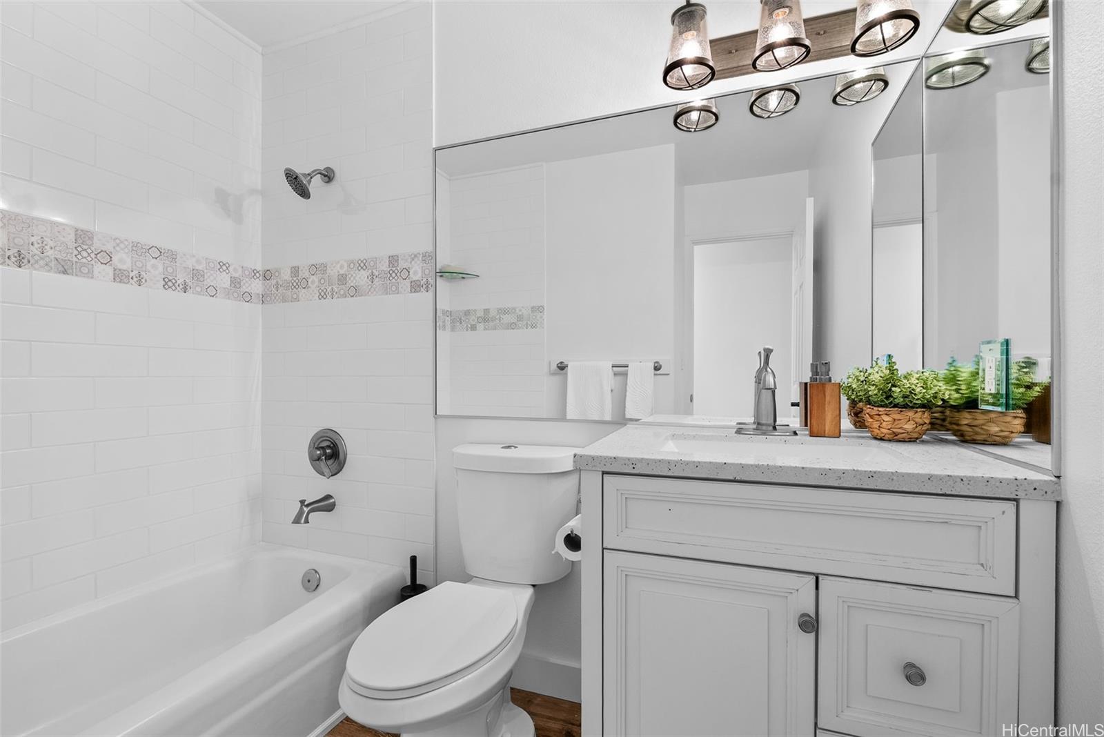 [0] => Completely ready to move right in! Brand new gorgeous plank ceramic tile floors throughout home. Open concept floor plan with vaulted ceilings. Large sliding glass doors in living room & dining room bring in brightness & light. Covered 161 sq ft lanai extends the living space with an outdoor/indoor feeling and lovely tropical, easy-to-care for landscaping. All brand new or newer stainless electric appliances in kitchen with newer cabinets, quartz countertops and deep, stainless farm sink. Main home is 4 bedrooms, 2 bathrooms with separate entry lockout studio suite for total of 5 bedrooms, 3 bathrooms and 2,067 sq ft of living space. All bathrooms have been recently updated with attractive tile in shower, new vanities & solid surface countertops. 2 car garage with ample room for storage. 18 owned PV panels help to offset the electric bill substantially. Close to Hamakua Drive and all the great Kailua restaurants, stores and businesses. 1-1/2 miles to Kailua Beach, 12 miles to downtown Honolulu and 19 miles to Honolulu International airport. Open House: March 8, 2026 @ 11am-2pm.