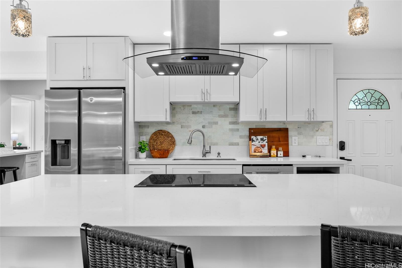 string(1094) "Completely ready to move right in! Brand new gorgeous plank ceramic tile floors throughout home. Open concept floor plan with vaulted ceilings. Large sliding glass doors in living room & dining room bring in brightness & light. Covered 161 sq ft lanai extends the living space with an outdoor/indoor feeling and lovely tropical, easy-to-care for landscaping. All brand new or newer stainless electric appliances in kitchen with newer cabinets, quartz countertops and deep, stainless farm sink. Main home is 4 bedrooms, 2 bathrooms with separate entry lockout studio suite for total of 5 bedrooms, 3 bathrooms and 2,067 sq ft of living space. All bathrooms have been recently updated with attractive tile in shower, new vanities & solid surface countertops. 2 car garage with ample room for storage. 18 owned PV panels help to offset the electric bill substantially. Close to Hamakua Drive and all the great Kailua restaurants, stores and businesses. 1-1/2 miles to Kailua Beach, 12 miles to downtown Honolulu and 19 miles to Honolulu International airport. Open House: March 8, 2026 @ 11am-2pm."