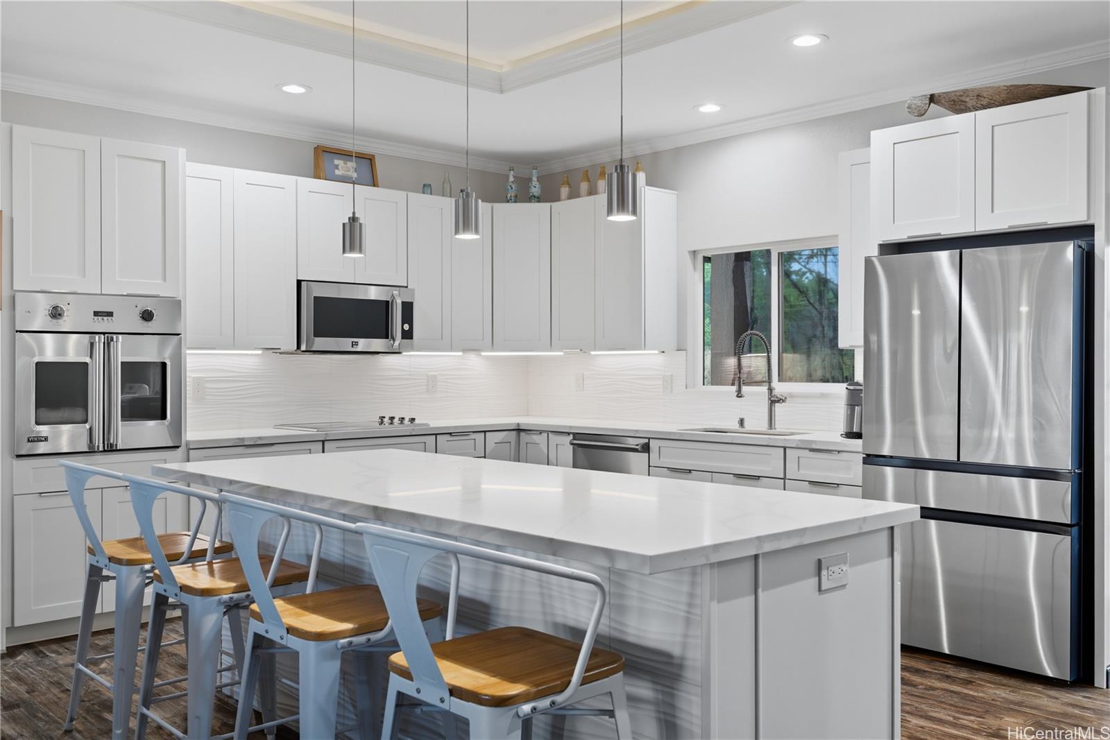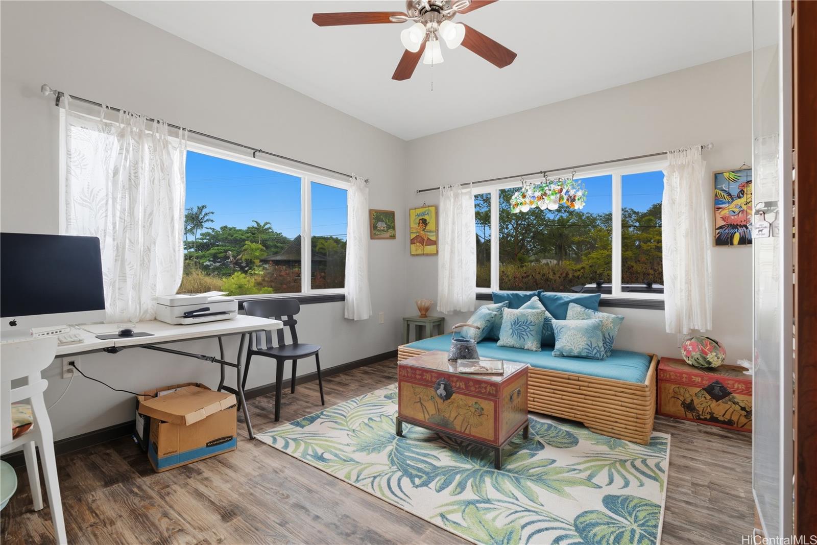 string(1183) "MODERN COUNTRY RETREAT – Perched on 5 acres of prime agricultural land in the highly desired private community of Poamoho Estates, this 4-bedroom + office, 3-bath home built in 2021 showcases sweeping ocean and mountain views. Designed for both island and country living, the open-concept layout features recessed ceilings, expansive windows, and seamless indoor-outdoor flow to two covered lanais—perfect for entertaining or sunset relaxation. Quality craftsmanship shines throughout, from the chef’s kitchen and airy living spaces to the two ensuite bedrooms, both with walk-in showers, walk-in closets, and double doors that open to a covered lanai. The primary suite adds an extra touch of luxury with dual sinks. Surrounded by rolling green hills and tropical landscaping, this newer home offers privacy, security, comfort, and convenience—just minutes from Haleiwa’s shops, surf breaks, and North Shore beaches. Poamoho Estates is one of Oahu’s last private communities of its kind, with large acreage properties, a peaceful country setting, and quick freeway access for easy commuting to town. Bring your horses, build your barn—there’s plenty of room to ride!"