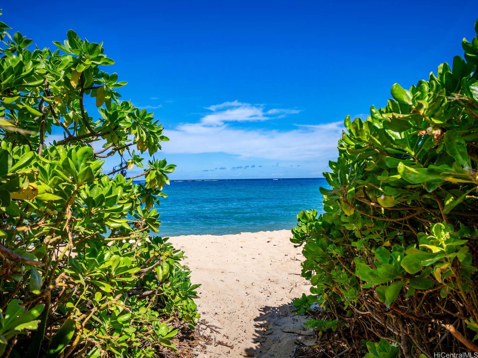 Experience the best of North Shore living in this charming two-bedroom, two-bath oceanfront unit set on one of the most breathtaking stretches of beach on Oahu. Nestled in a quiet and peaceful location, this residence sits directly on a pristine sandy shoreline—ideal for morning walks, sunset watching, surfing, fishing and the oceanfront lifestyle. Thoughtfully designed to capture sweeping ocean views, the home offers an inviting blend of comfort and island charm. As one of only two units in an intimate CPR—with no fees—you’ll enjoy the privacy and freedom of a residence with the ease of low-maintenance living. This home sits on a large lot with 4,748 sq. ft. of common area, 2,145 sq. ft of exclusive oceanfront land and 31 ft. of exclusive ocean frontage. The home itself offers 1054 sq. ft. of interior living area. Offering exclusivity, privacy and direct ocean access. Property is a CPR in a 3 story building consisting of 2 units with this layout: Ground floor is Parking & Laundry, Second floor includes this 2 bedroom 2 bathroom unit and the third floor is a 3 bedroom 2 bathroom unit. Listing by: Compass (808) 375-4811