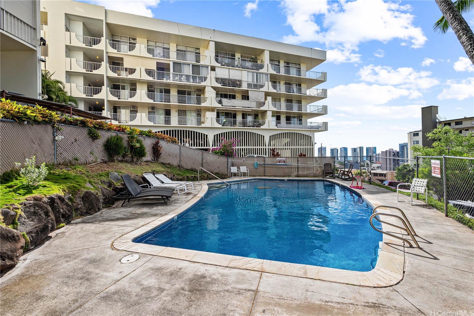 Experience island living at its best in this charming 1-bedroom END UNIT just minutes from downtown Honolulu! Enjoy the convenience of city life while coming home to your own private retreat with sweeping OCEAN and MOUNTAIN VIEWS! The spacious wraparound lanai on the most scenic side of the building is perfect for relaxing, entertaining, or taking in the sunset after a long day. TMK records show that the lanai is 187 sq ft, however, when measured it and says that it is 277 sq ft - indoor/outdoor living at its finest! Inside, you’ll find an open and airy layout with plenty of natural light and refreshing trade winds. The flooring, bathrooms and kitchen were renovated around 15 years ago. The washer/dryer combo was just purchased in May 2025, and the dishwasher is brand new, never been used. Other recent improvements have been new awnings added in 2022, interior living room walls painted, and screens/sliding glass door rollers replaced in 2025. Furniture can be purchased separately. Building is pet friendly, has a pool, and your covered, separated parking stall is right at the driveway entrance. Plenty of street parking right below you on Prospect St, for guests or a second car. Listing by: Coldwell Banker Realty (808) 676-7200
