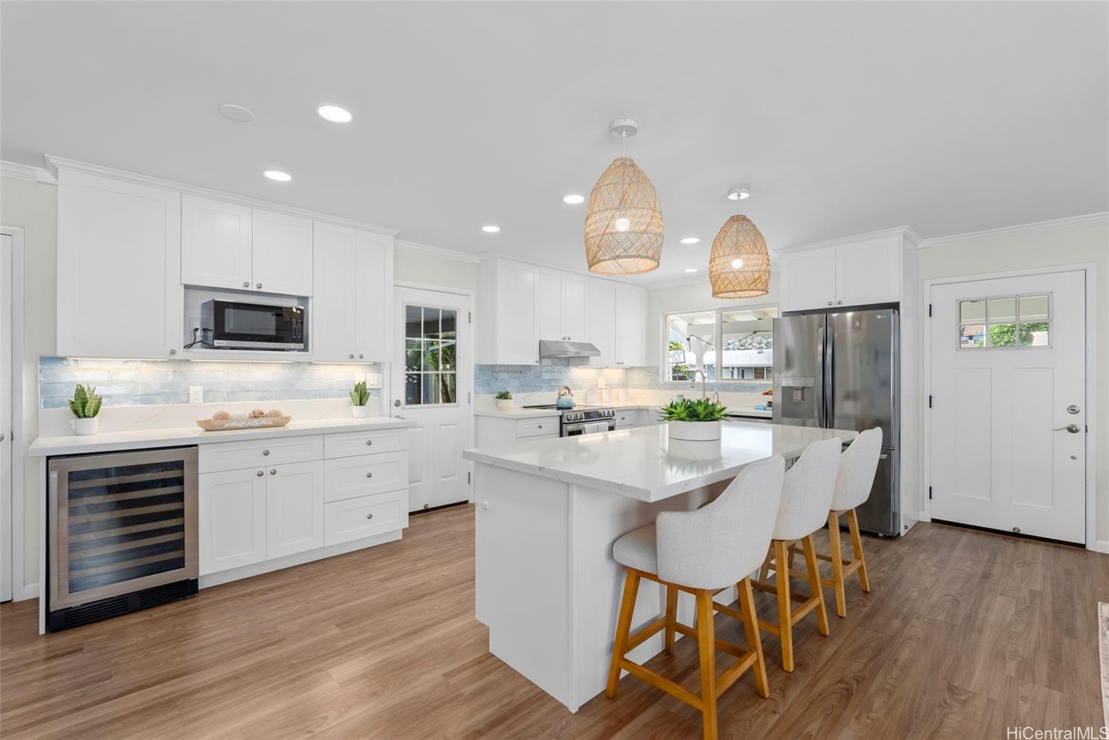 string(1060) "This is the only single-level 5-bedroom single-family home in Hawaii Kai under $2 million. Enjoy stunning views of iconic Koko Head from the covered front porch, a private backyard pool and patio, a PV system, and grandfathered net metering for lasting energy savings. Step into a spacious open-concept living room and designer kitchen, perfect for entertaining and everyday gatherings. There is room for everyone, including a generous primary suite with ensuite bath and a separate entrance that offers privacy and versatility. Ideally located at the start of Hawaii Kai, this home offers unmatched convenience. Easily walk to Koko Marina with dining, shops, and various water activities, or explore Koko Head District Park, featuring tennis courts, a playground, and the trailhead of the famous Koko Crater Railway hike. Meticulously cared for and thoughtfully updated over time, this home showcases renovations throughout reflecting true pride of ownership. Tax records differ. Buyers must complete all due diligence that they may deem material. Sold AS-IS."