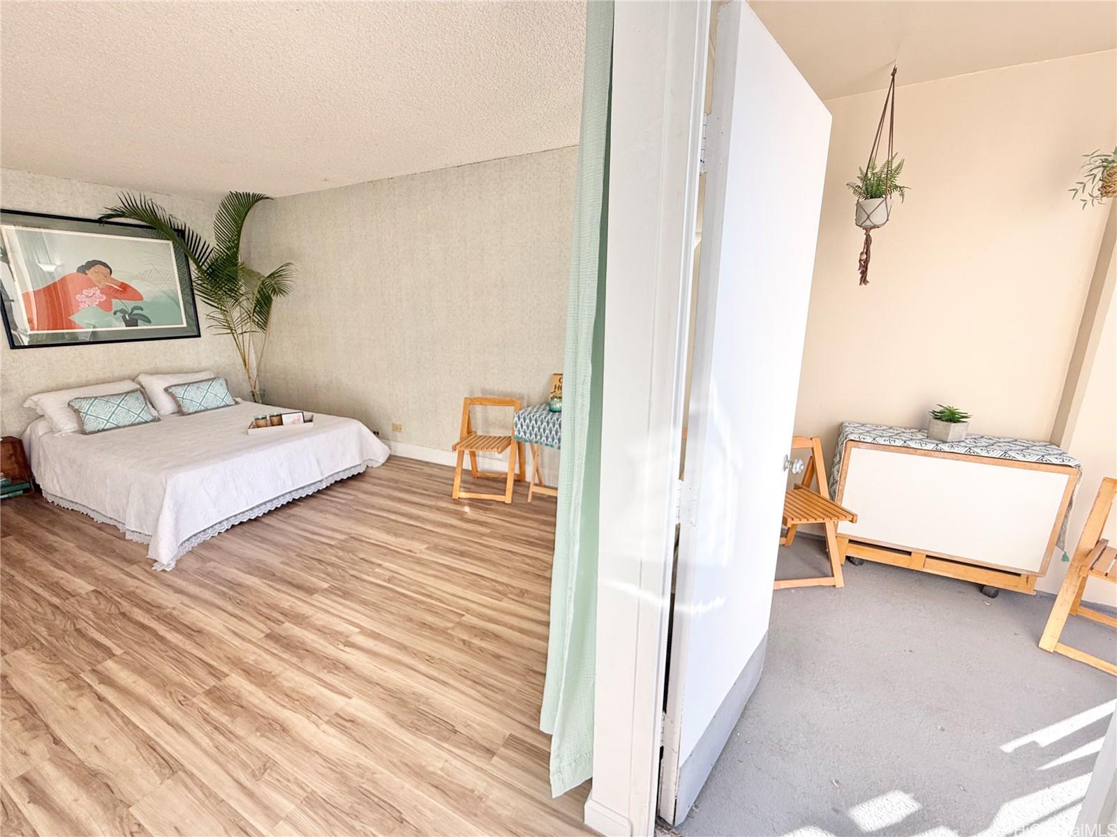 Set on the 14th floor of Pacific Grand in the Ala Moana area, this centrally located Honolulu studio condo offers an opportunity to own real estate in the heart of town at a $220,000 price point. Featuring approximately 401 square feet of interior living paired with a 47 square foot private lanai, creating an indoor outdoor living layout not available in every unit. Peek a boo ocean views from the kitchen and lanai look toward Park Lane and the Pacific beyond. The unit remains partially original, offering a great entry point into the building and the opportunity to build future value through customization, while benefiting from updated kitchen countertops, newer cabinetry, updated vinyl flooring, and a newer window AC unit. Maintenance fees cover electricity, a rare feature among Honolulu condominiums, along with internet, cable TV, sewer, and hot water. Pacific Grand offers 24 hour security, keyed elevators, an on site pool, community laundry rooms, and parking available through the resident manager on a first come, first served rental basis. Incredibly convenient location near Waikiki, Ala Moana Beach, dining (including iconic Don Quijote), bus lines, and Kakaako. Listing by: Berkshire Hathaway HmSvc HI RE (808) 382-1050