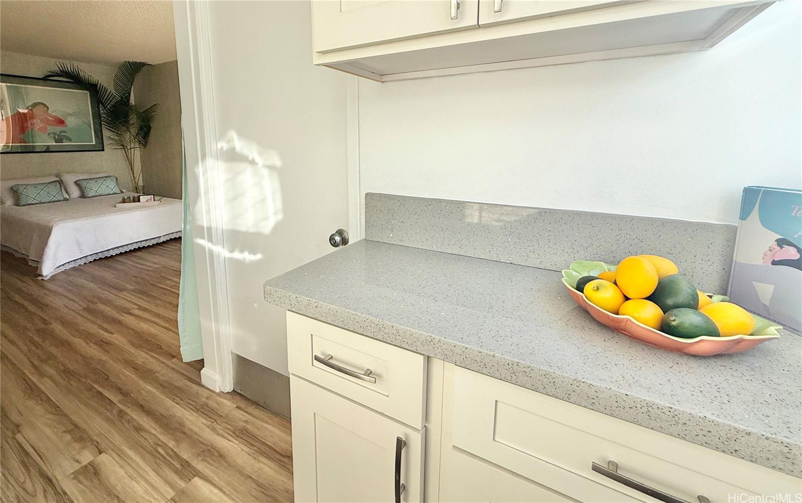 [0] => Set on the 14th floor of Pacific Grand in the Ala Moana area, this centrally located Honolulu studio condo offers an opportunity to own real estate in the heart of town at a $220,000 price point. Featuring approximately 401 square feet of interior living paired with a 47 square foot private lanai, creating an indoor outdoor living layout not available in every unit. Peek a boo ocean views from the kitchen and lanai look toward Park Lane and the Pacific beyond. The unit remains partially original, offering a great entry point into the building and the opportunity to build future value through customization, while benefiting from updated kitchen countertops, newer cabinetry, updated vinyl flooring, and a newer window AC unit. Maintenance fees cover electricity, a rare feature among Honolulu condominiums, along with internet, cable TV, sewer, and hot water. Pacific Grand offers 24 hour security, keyed elevators, an on site pool, community laundry rooms, and parking available through the resident manager on a first come, first served rental basis. Incredibly convenient location near Waikiki, Ala Moana Beach, dining (including iconic Don Quijote), bus lines, and Kakaako.