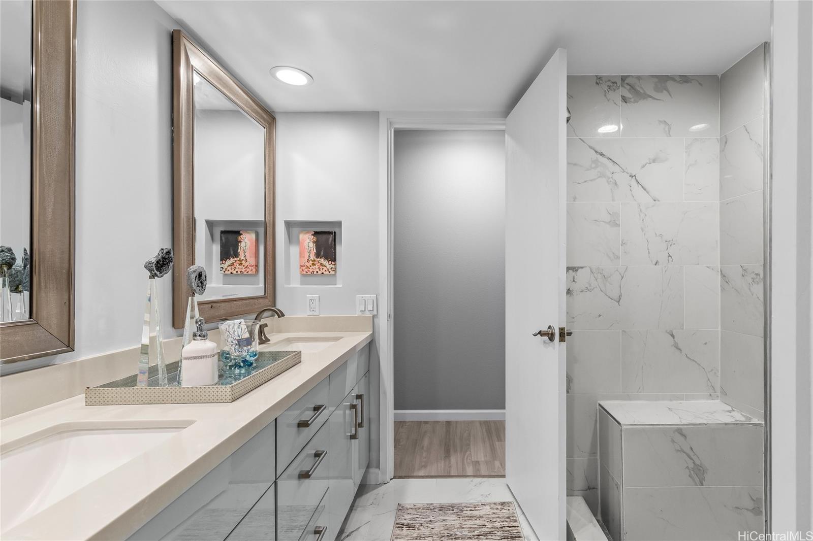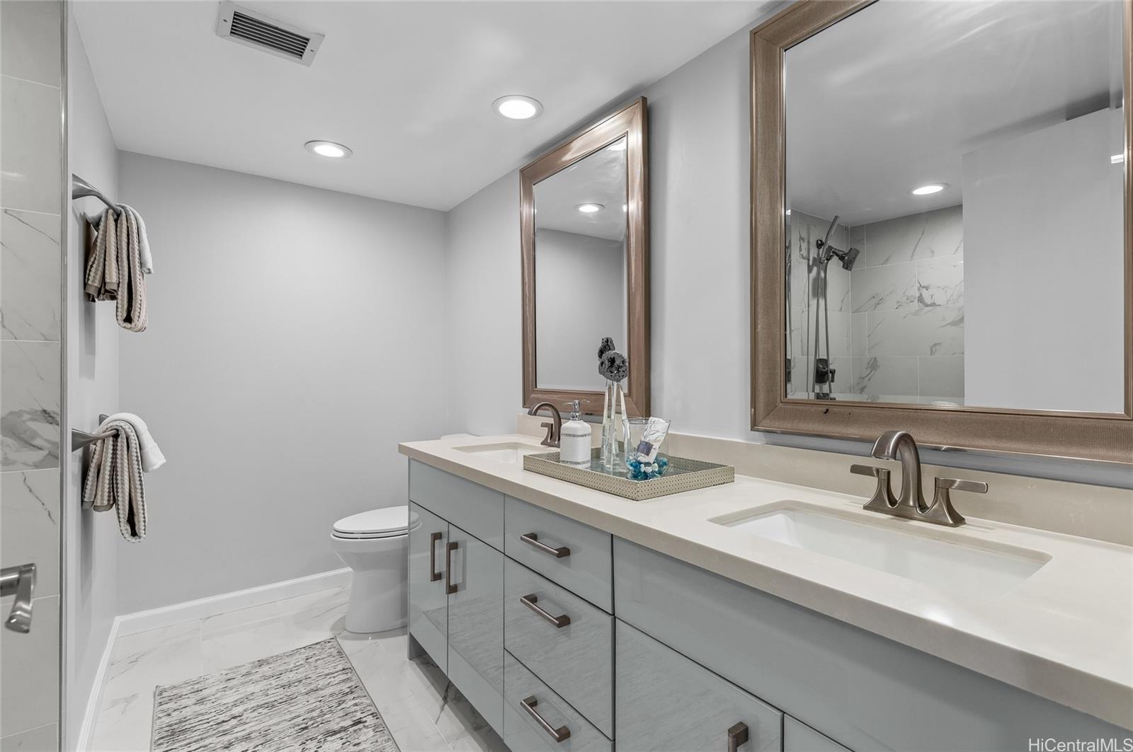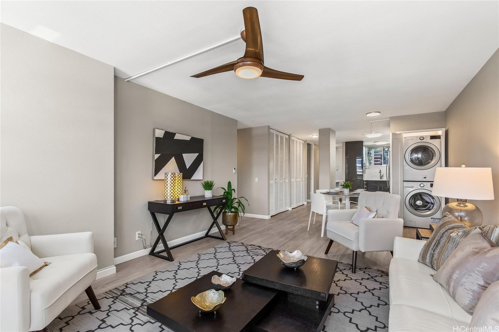 Live in the heart of Honolulu! This rarely available 3-Bedroom/2-Bathroom unit at Kapiolani Bel-Aire offers the perfect blend of comfort, convenience, and luxury. This beautiful unit has been fully renovated with luxury vinyl flooring, granite countertops and backsplash in the kitchen, complemented by lovely high-gloss cabinets, and stainless-steel appliances and sink. Large primary bedroom! Both the Primary and 2nd bathroom have been upgraded with tile flooring, matching tile showers, quartz countertops, and high-gloss cabinets. The LG front-load washer & dryer units are situated just off the dining and living room area in a double door enclosure to optimize space and convenience. Modern light fixtures throughout the unit and retractable blade ceiling fans with built-in Bluetooth enabled speakers in all 3 bedrooms. Kapiolani Bel-Aire has a swimming pool, nicely designed lobby, and assigned storage locker for the unit. Located just across the street from Don Quijote. Walking distance from Ala Moana Shopping Center, beaches, dining, and entertainment. Pet friendly: one pet per unit up to 20 lbs. Perfect for first-time homebuyers, investors, or people looking to upgrade! Listing by: eXp Realty (808) 282-8683