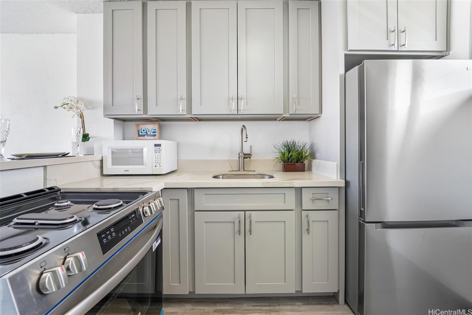 Experience convenient living in the heart of Kalihi close to the shopping center, schools, businesses, restaurants and bus routes. Recent upgrades to this well maintained 2/1 unit include new ceiling light fans in all rooms to help keep you cool and a new security door. Enjoy your kitchen with a brand new gas stove and refrigerator. Unit includes one assigned parking. Building complex is fully gated. Maintenance fee includes electricity, gas, water, and sewer. Schedule your showing today! Listing by: Alonso Agency LLC (808) 282-2003