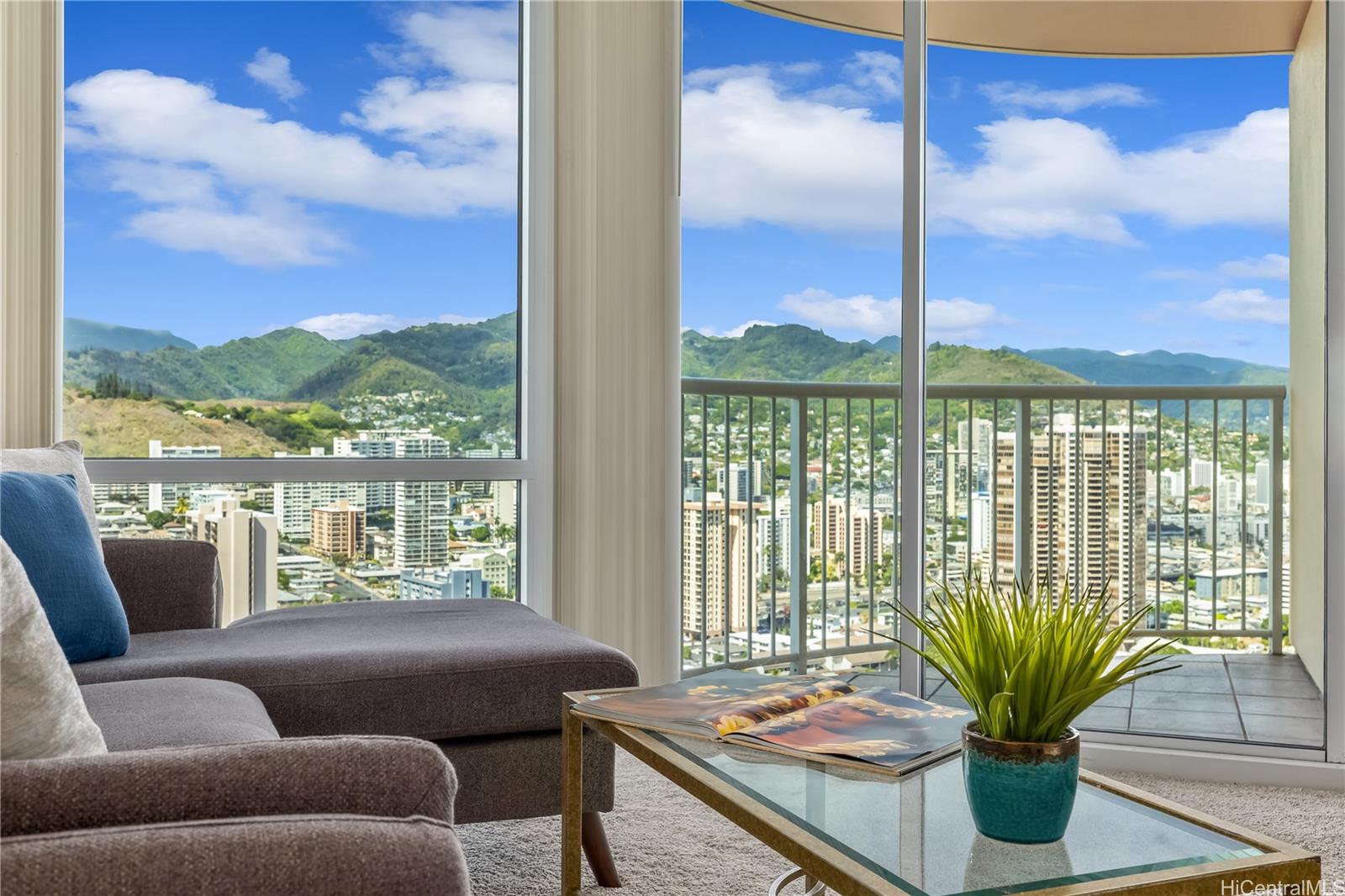 Enjoy sweeping mountain, ocean, and city views from this spacious corner two bedroom, two bath home on a desirable high floor in One Archer Lane. This thoughtfully designed condo includes a private balcony to enjoy the fresh air, an open kitchen with expansive counter space and countertop seating, and an entry way. Windows on two walls allow wonderful breezes to flow through and provide views from all areas. This unit comes with use of two secured tandem parking spaces. Amenities include a large pool with spa, bbq area, recreation room, car wash area, EV charging area, 14 guest parking spaces, friendly and helpful managers, and 24 hour front desk security. Conveniently located near the beach, Ward Village with boutique shops and restaurants, Ala Moana Shopping center, downtown Honolulu, and freeway access. Pet friendly with up to two pets no more than 30 lbs. each. Listing by: Coldwell Banker Realty (808) 741-8292