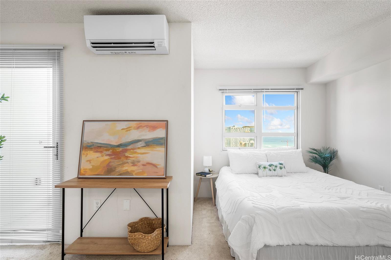 Welcome home to this rarely available studio unit in 801 South Street, located on a high floor, with ocean views! Great for first time home buyer, or Investor, this unit is equipped with fire sprinklers, a washer/dryer in the unit and a brand new split AC unit. Building is fully insured! This is one you won't want to miss! Listing by: Engel & Volkers Honolulu (808) 479-9090