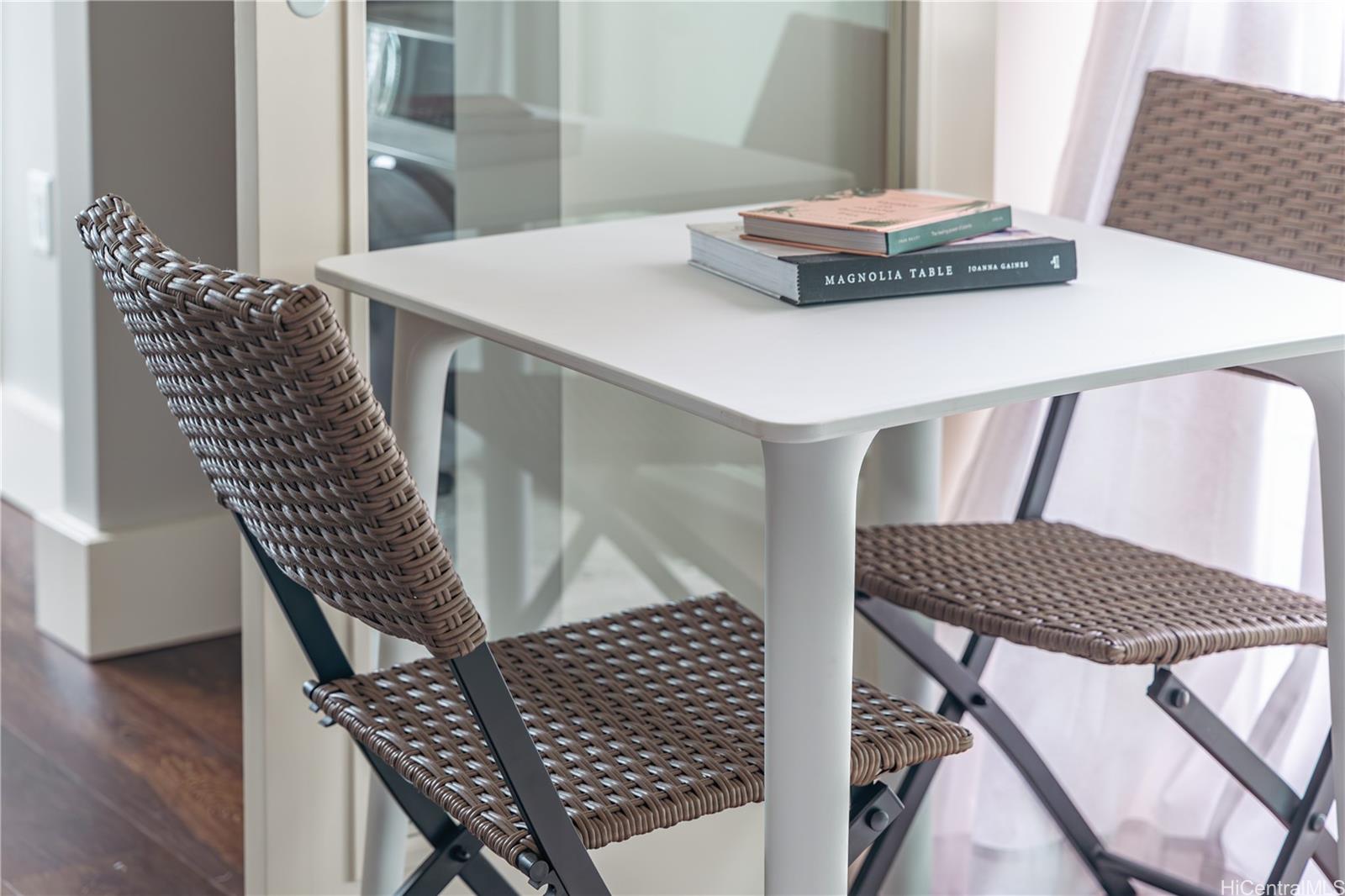 [0] => Welcome to 803 Waimanu, Unit 512, completed in 2021, offering a boutique living experience in the heart of Kaka'ako. One of the standout features of this unit is the large private lanai, providing a beautiful overlook of Kaka'ako along with a peekaboo ocean view—an ideal spot for relaxation. Parking is included for your convenience. Additionally, this building is fully insured, providing peace of mind as you embark on your new living journey. This immaculate, fully furnished unit is equipped with top-of-the-line GE appliances, including a convenient 2-in-1 washer/dryer, modern dishwasher, sleek stove and oven combination, handy garbage disposal, and spacious refrigerator and freezer. Enjoy luxurious Carrara marble countertops and elegant vinyl wood flooring, which seamlessly combine style and functionality for a truly exceptional living space.  Don’t miss the opportunity to make 803 Waimanu your new home!
